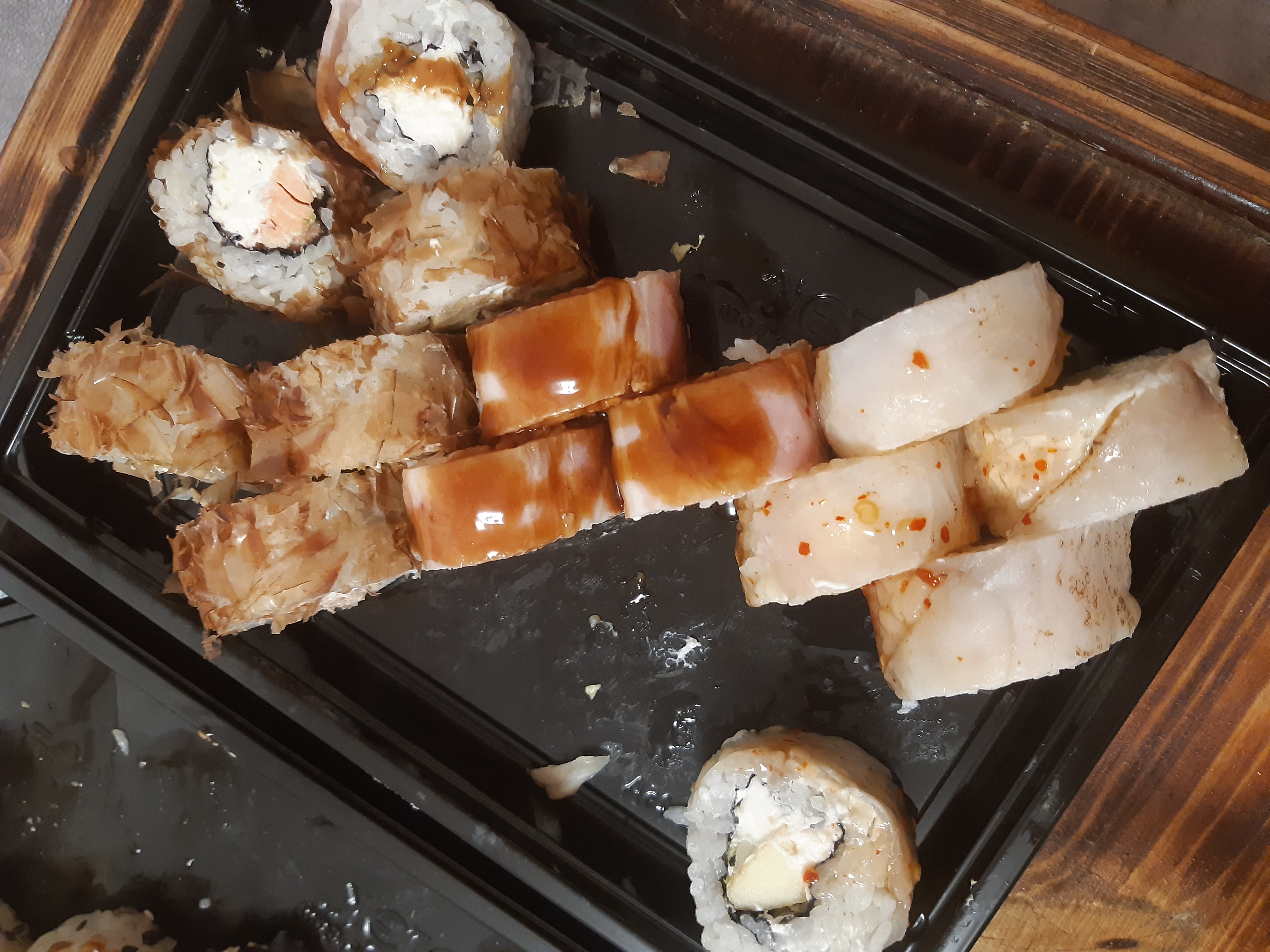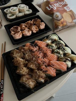 Доставка быстрая и суши приехали в точно обозначенное время. Сами суши вкусные, очень много начинки (не просто сыра или овощей, а именно рыбы), за авокадо в идеальном состоянии отдельное спасибо!