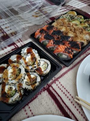 - Промокод дает право на скидку до 59% на суши-сеты от "Юджын Крабс"