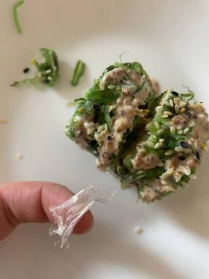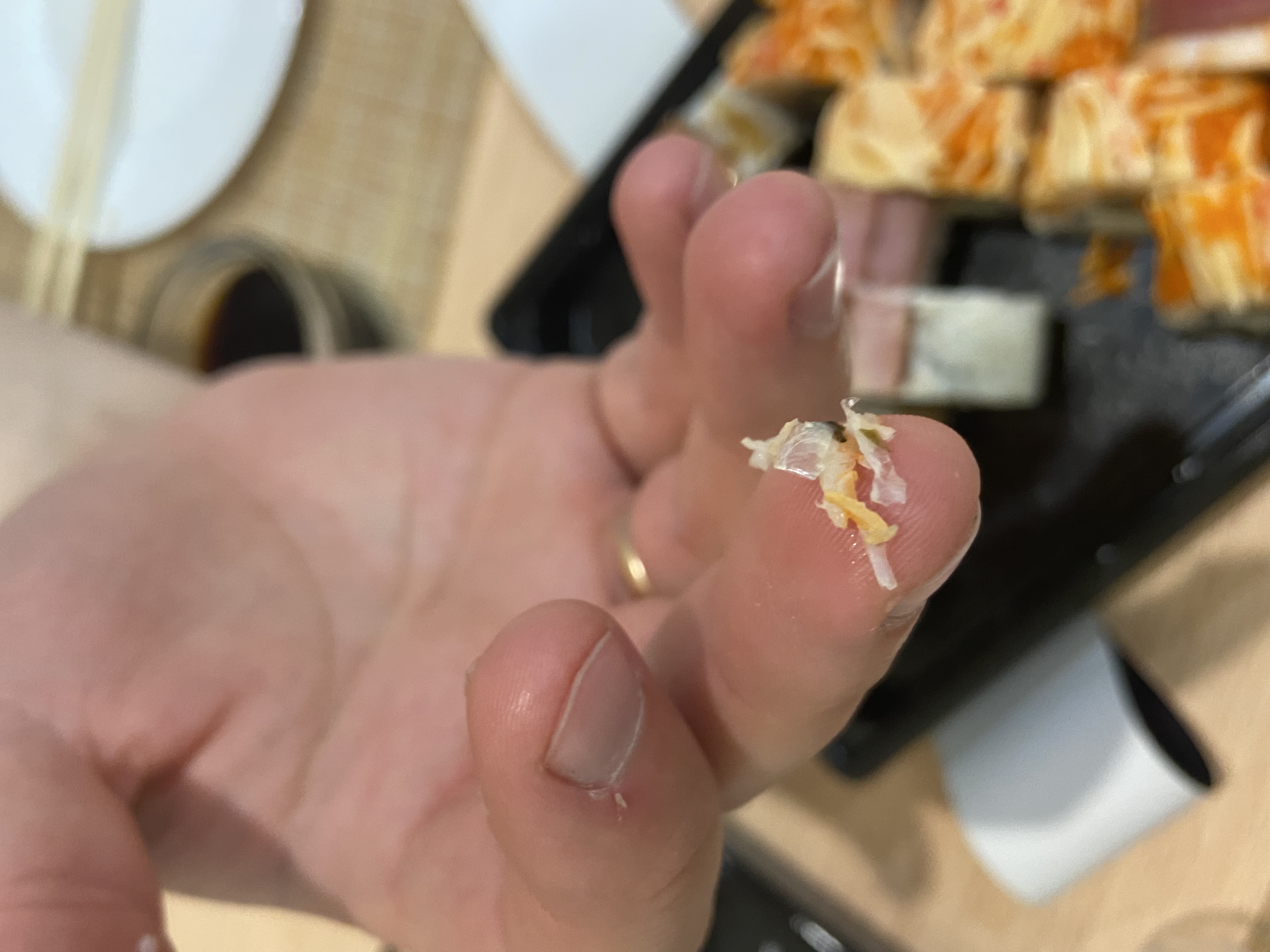 Это был наш последний заказ! Верю, что один раз мог попасться не тот повар, второй раз что-то тоже могло пойти не так. Человеческий фактор не исключаю, но сейчас! Это уже закономерность. Опустим момент, что рис был резиновый и лип к зубам снова, и что соевый разлился и все гарниры приехали грязные, но КУСОК ПИЩЕВОЙ ПЛЕНКИ. Это уже перебор. Связываться со мной не нужно. Не вижу смысла от ваших звонков. Заказывать здесь больше не буду