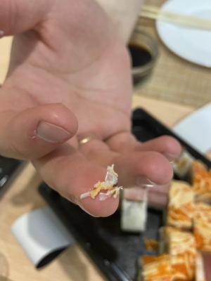 С мужем решили попробовать хваленые суши и какое же было разочарование, пол сета пошло в мусорку… заказывали сэт «Сакура» было заявлено, ролл Фьюжн со снежным крабом, в итоге там обычная крабовая палочка «Экономмаркет». Начинки мало, рыбы нет практически, рис, а внутри капля сыра и зеленуха. Цена неоправданно высокая, для такого сета, заказали ещё отдельно ролл с основного сайта, к сожалению там тоже был провал. Но самый кошмар, когда муж нашел кусочек неочищенной креветки в ролле. Эти суши - уровень суши из магазина. Не рекомендую, если не хотите испортить себе вечер.