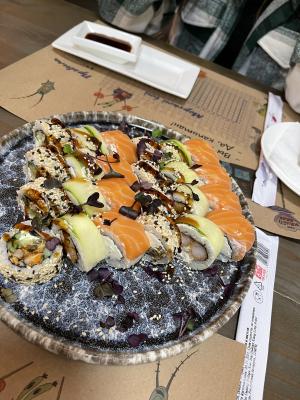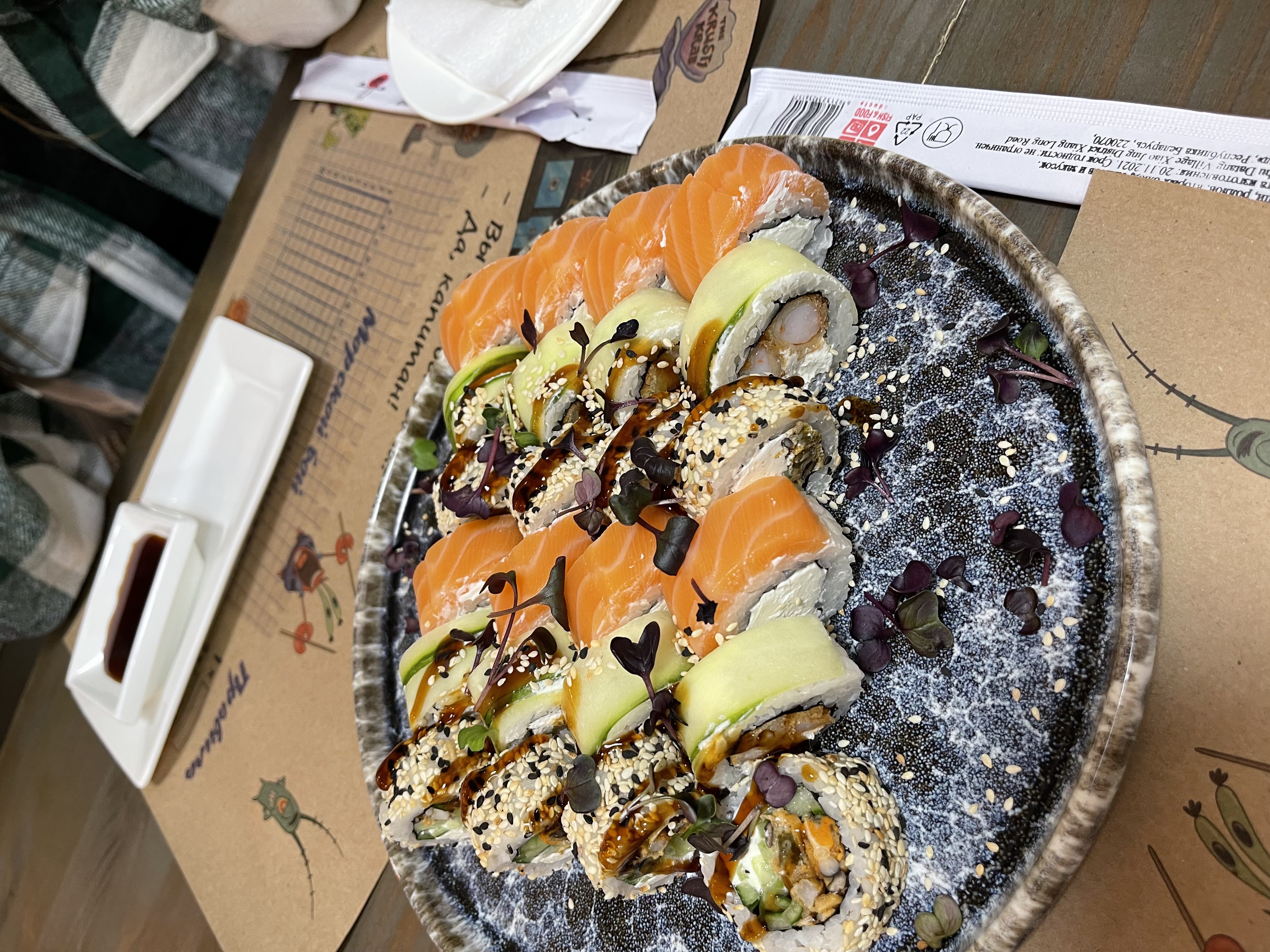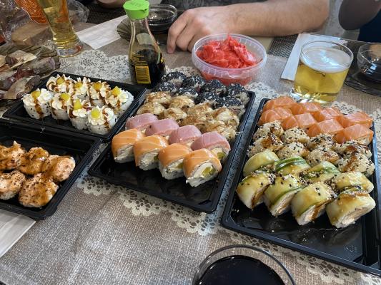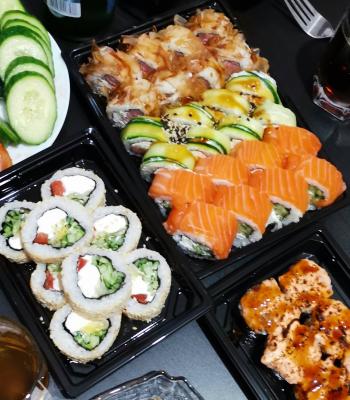 - Промокод дает право на скидку до 59% на суши-сеты от "Юджын Крабс"