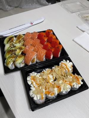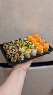 - Промокод дает право на скидку до 59% на суши-сеты от "Юджын Крабс"