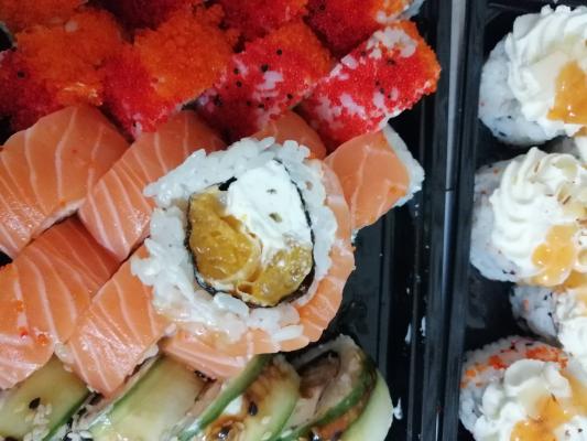 - Промокод дает право на скидку до 59% на суши-сеты от "Юджын Крабс"