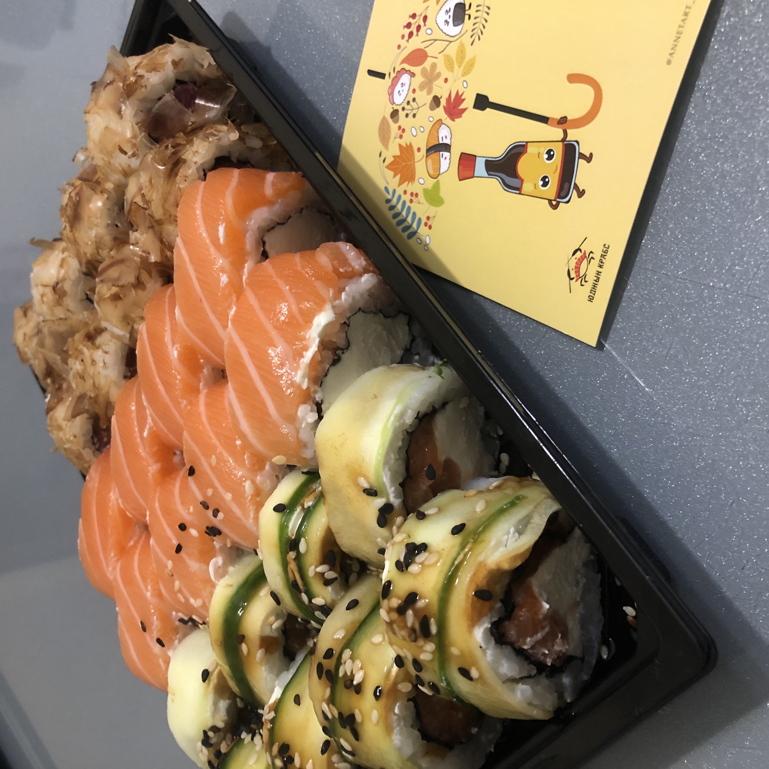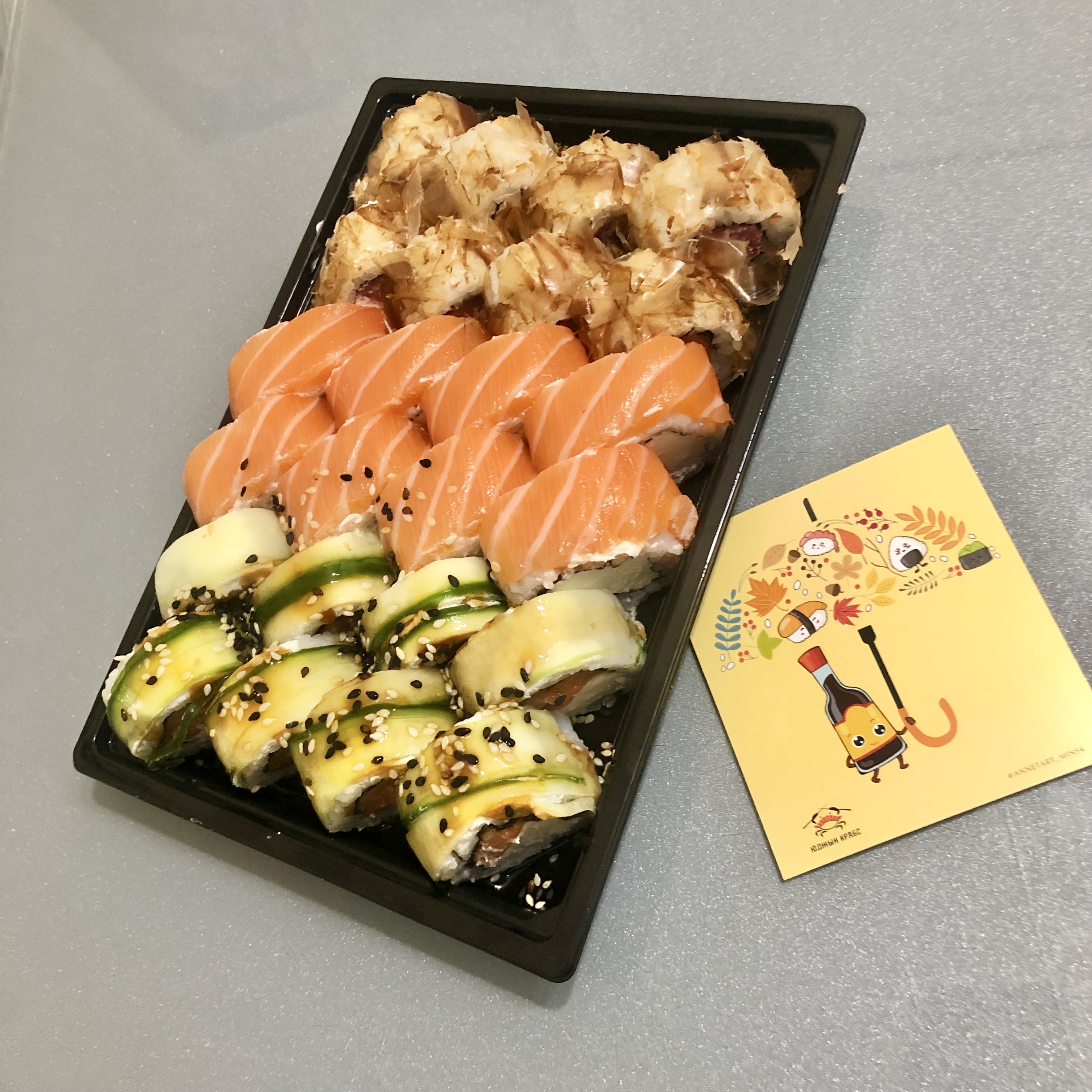 Ребята, спасибо!!! Каждый раз как в первый раз! Очень радуете и вкусно. Соевый соус прям то что нужно и ваши баночки ❤️. Про роллы, на самом деле странно читать отрицательные отзывы. Очень все круто!!! Не перестаю любить! ❤️