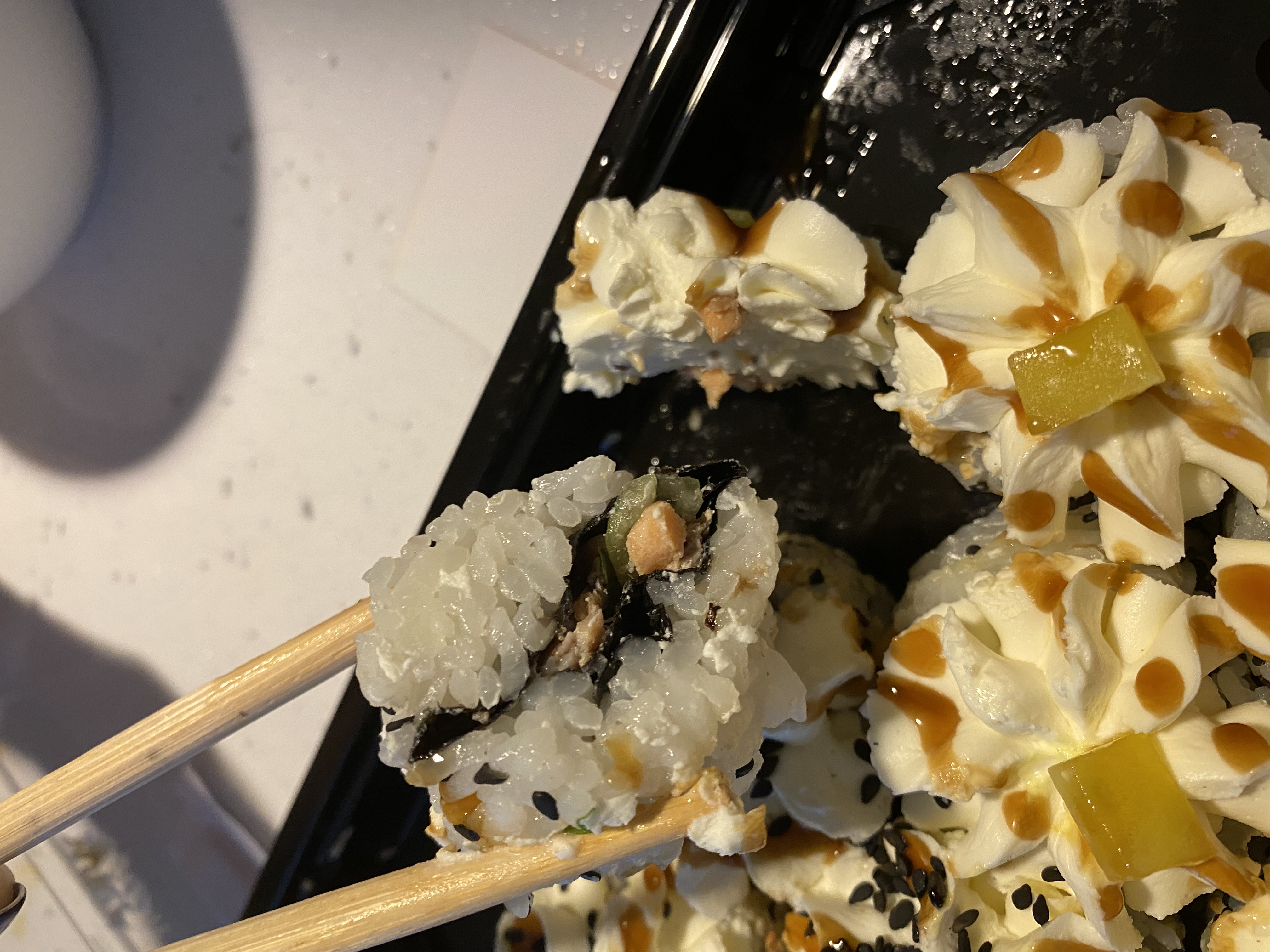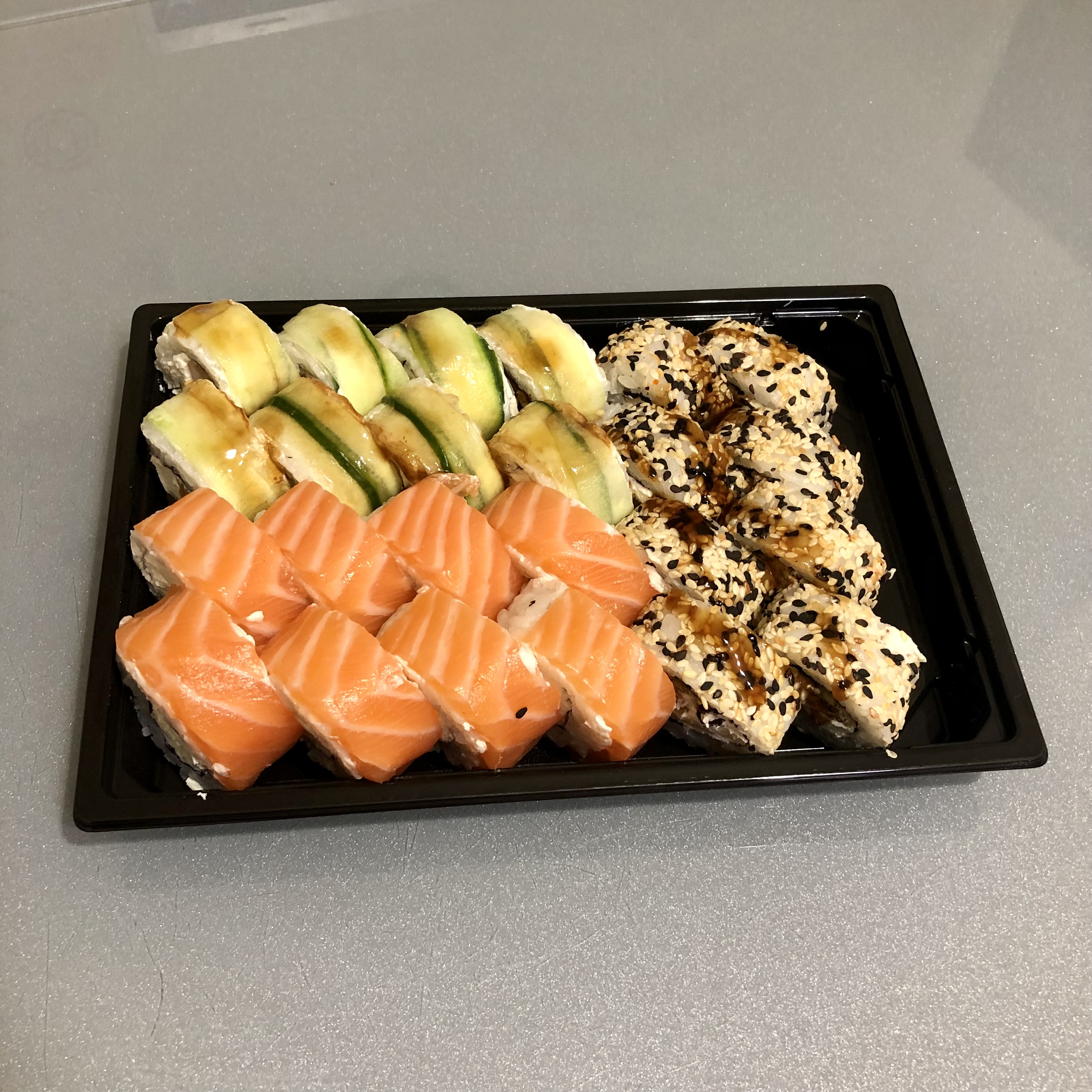 Суши очень вкусные,свежие и их много))) Доставка оперативная (доставили за час).