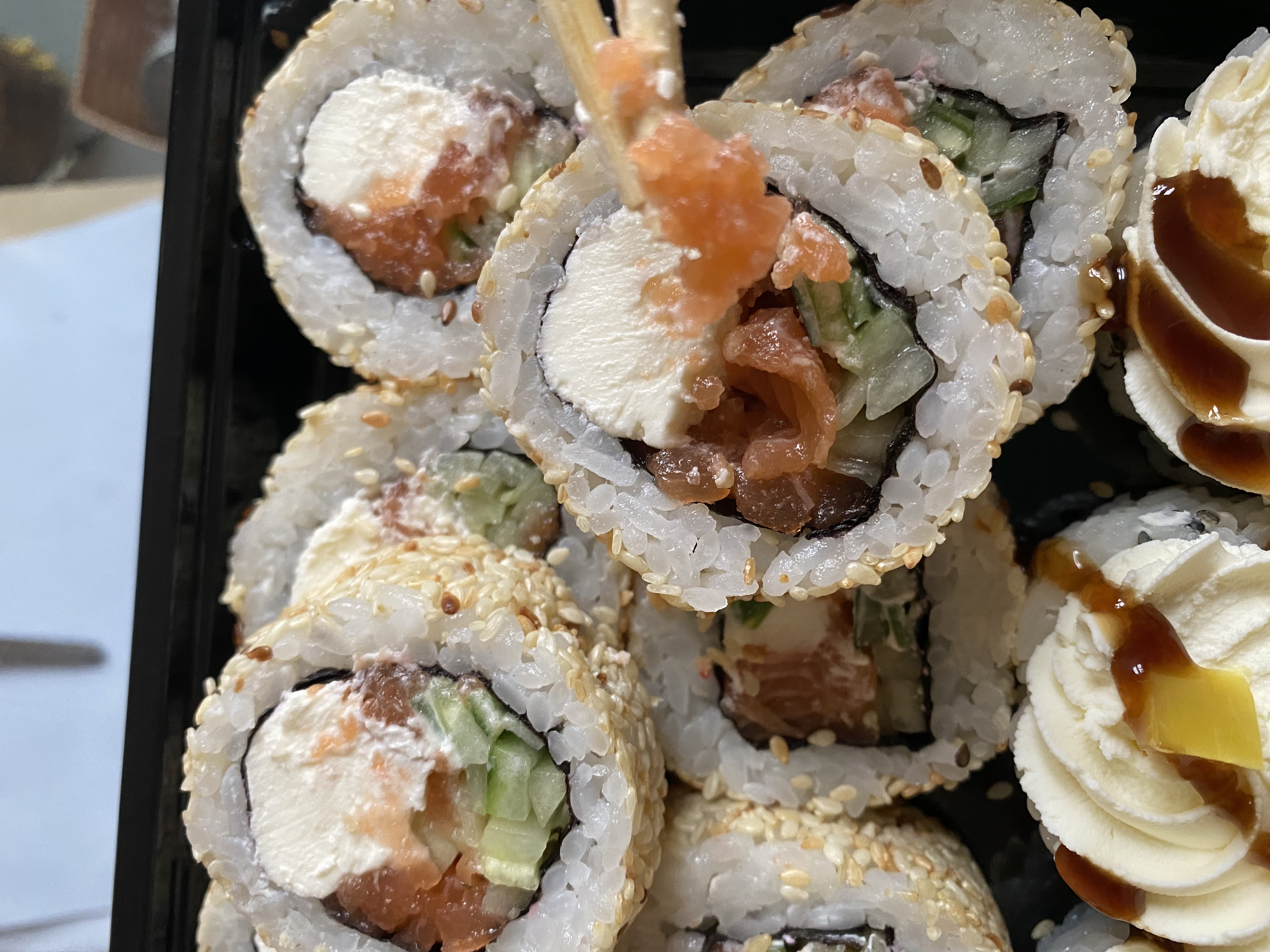 Просто замечательные суши, лучше не нашла. Много начинки, мало риса, очень вкусные и ароматные.