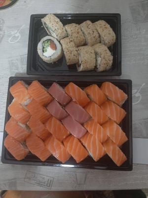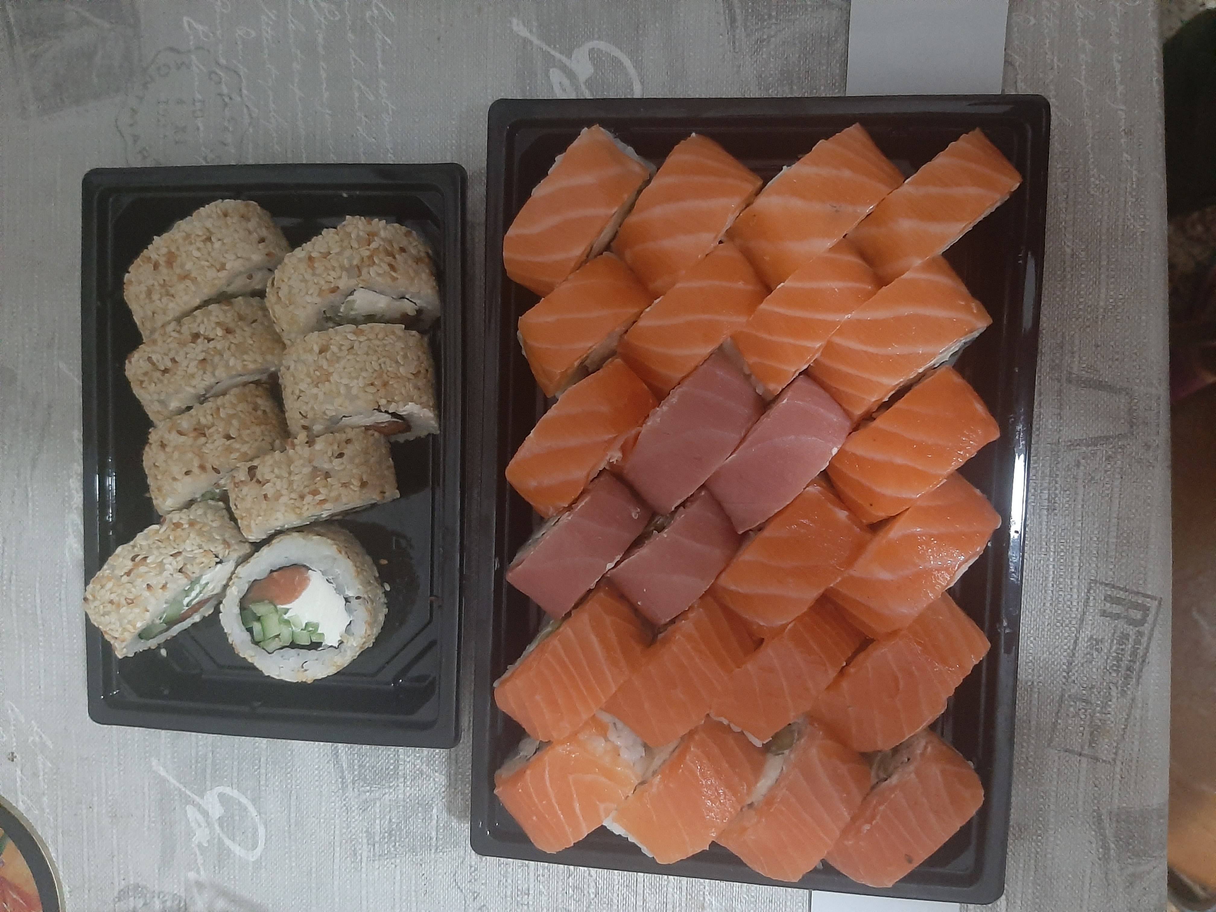 Огромное спасибо за безумно вкусные свежие суши ! Большие роллы с большим количеством свежей рыбы просто таяли во рту ! Благодарим от всего сердца за вашу работу и за оперативную доставку!!