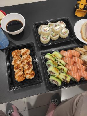подождать 2 часа - ок, но ожидание в 3,5 часа - это перебор. суши, или были или стали от долгой поездки, как будто несвежими и обветренными. курьер красавчик. но качество еды и ожидание в итоге расстроило.