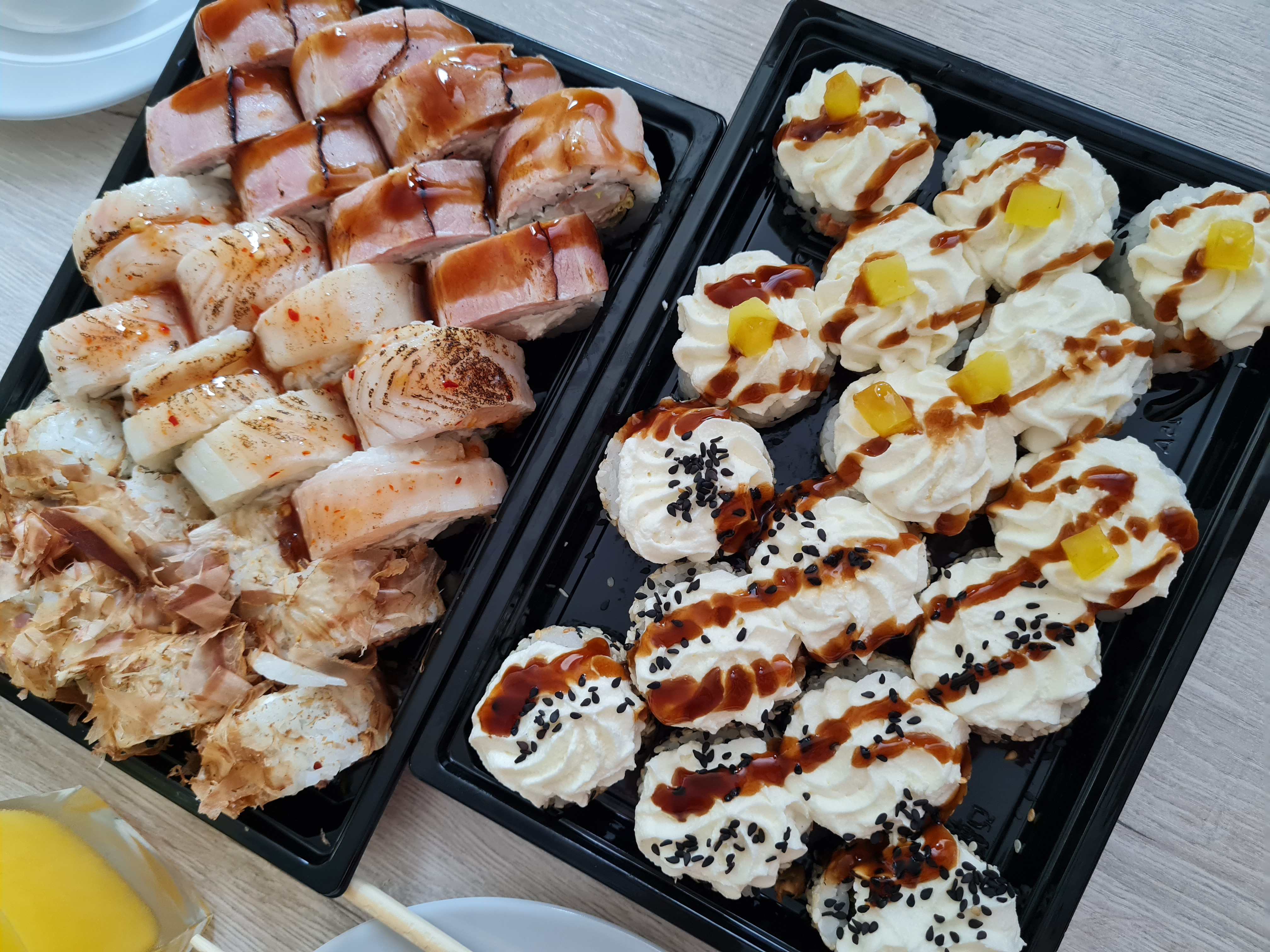 Самые вкусные суши,которые я ела в своей жизни!!! Большие,сочные,свежие,тающие во рту!!! Спасибо вам огромное! Очень вас прошу только не снижайте планку,после того,как попробуешь ваши суши,на все остальные даже смотреть не хочется😍😍😍👍👍👍