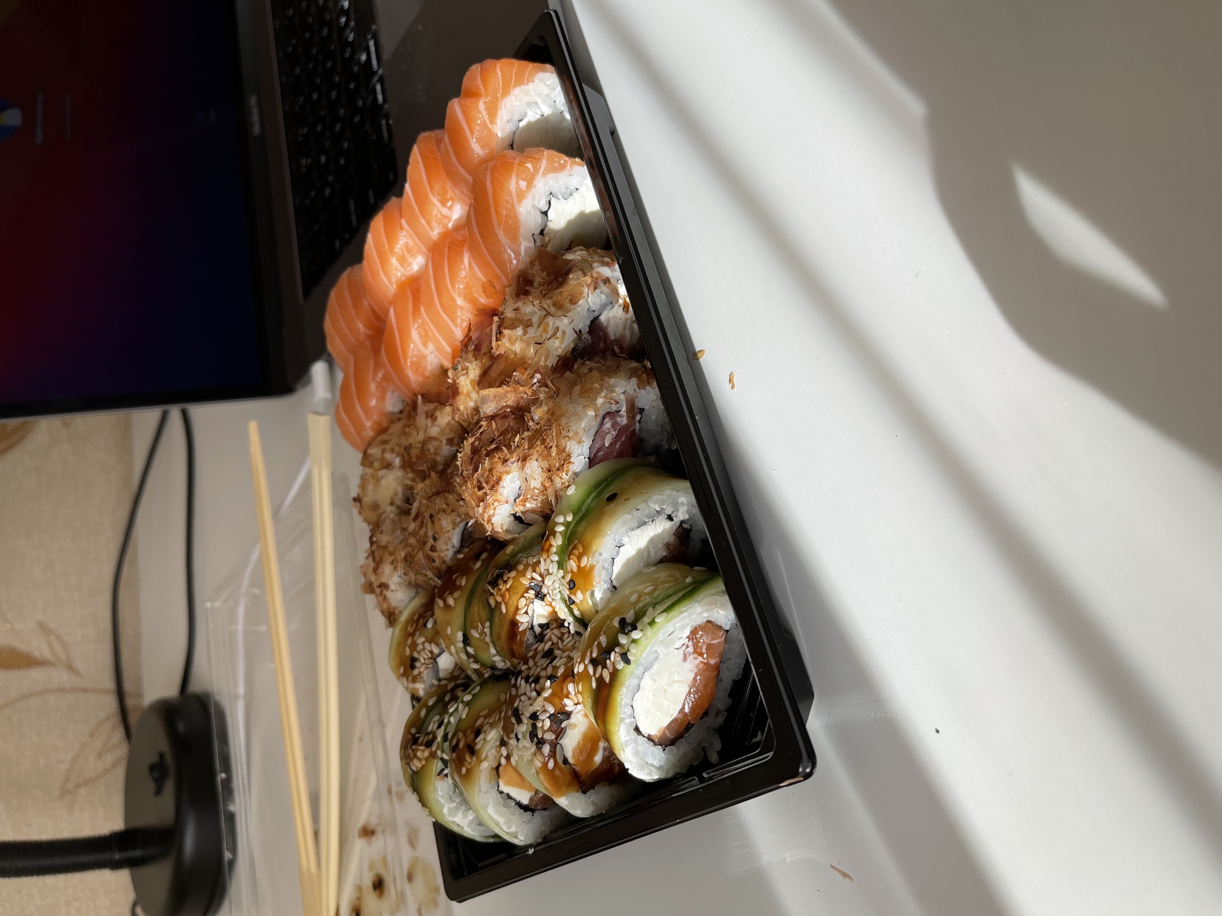 Заказывали впервые (сет "Лайт"), остались довольны. Хороший баланс начинки и риса, скручены плотно, свежие.