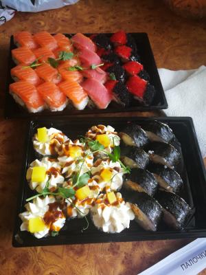 Всё супер!!! Обслуживание на высшем уровне!!! ЭТО САМЫЕ ВКУСНЫЕ СУШИ ЧТО Я ЕЛА)))) И главное никогда не опаздывают!!!! Спасибо за то что вы есть))) и огромное спасибо операторам за выдержку)))💋💋💋