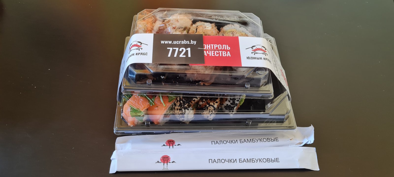- Промокод дает право на скидку до 59% на суши-сеты от "Юджын Крабс"