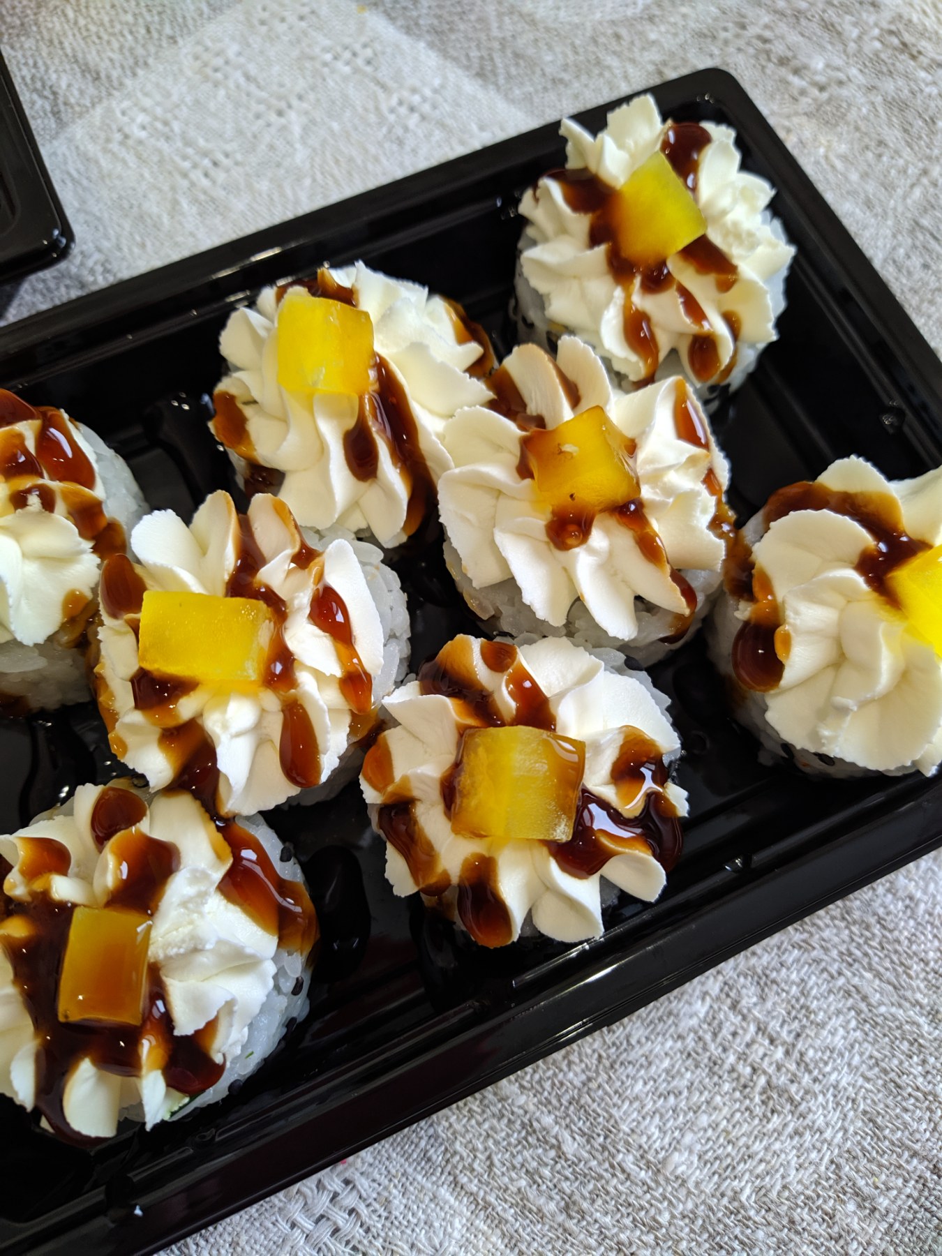 Суши свежие, большие, вкусные. Больше года заказываю только здесь и не собираюсь менять Юджина на другое заведение после неудачного опыта)