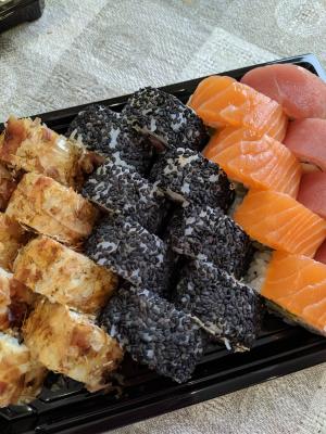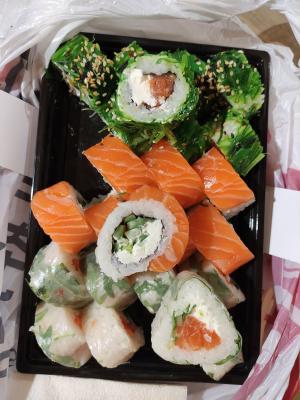 Заказывали впервые (сет "Лайт"), остались довольны. Хороший баланс начинки и риса, скручены плотно, свежие.