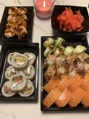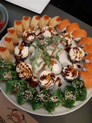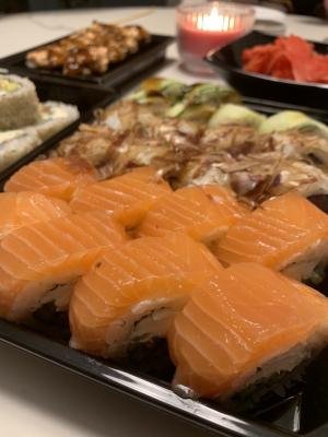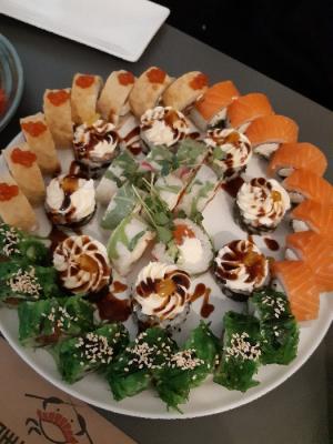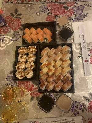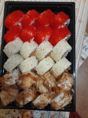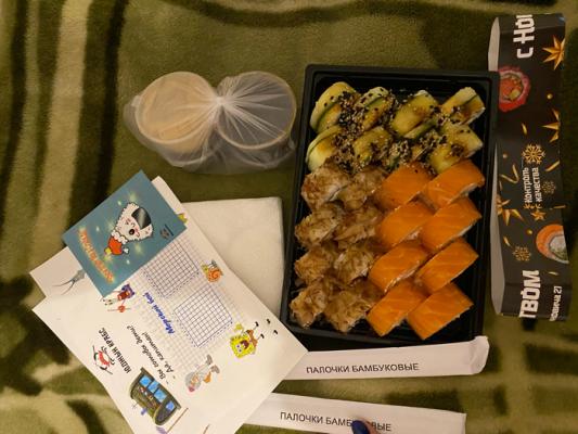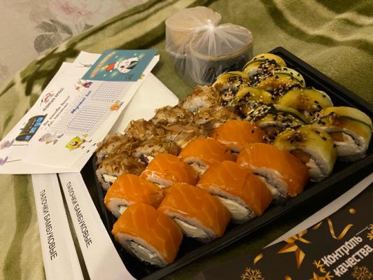 - Промокод дает право на скидку до 59% на суши-сеты от "Юджын Крабс"