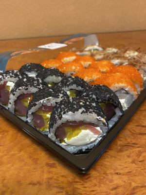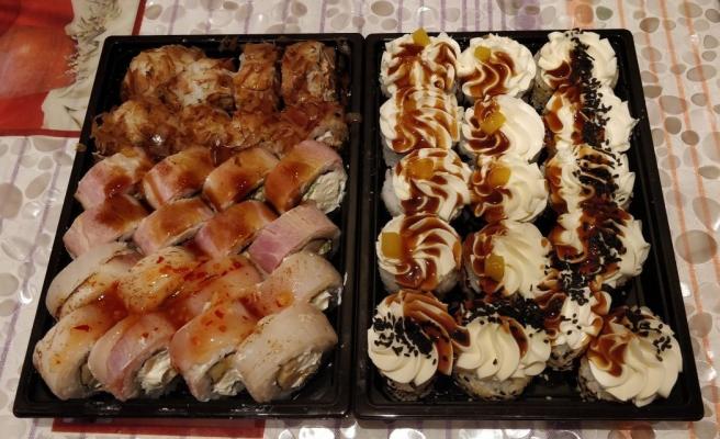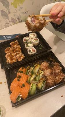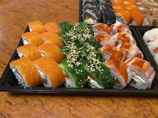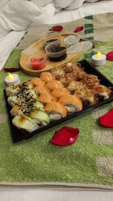 - Промокод дает право на скидку до 59% на суши-сеты от "Юджын Крабс"