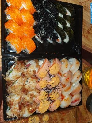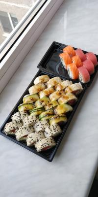 - Промокод дает право на скидку до 59% на суши-сеты от "Юджын Крабс"