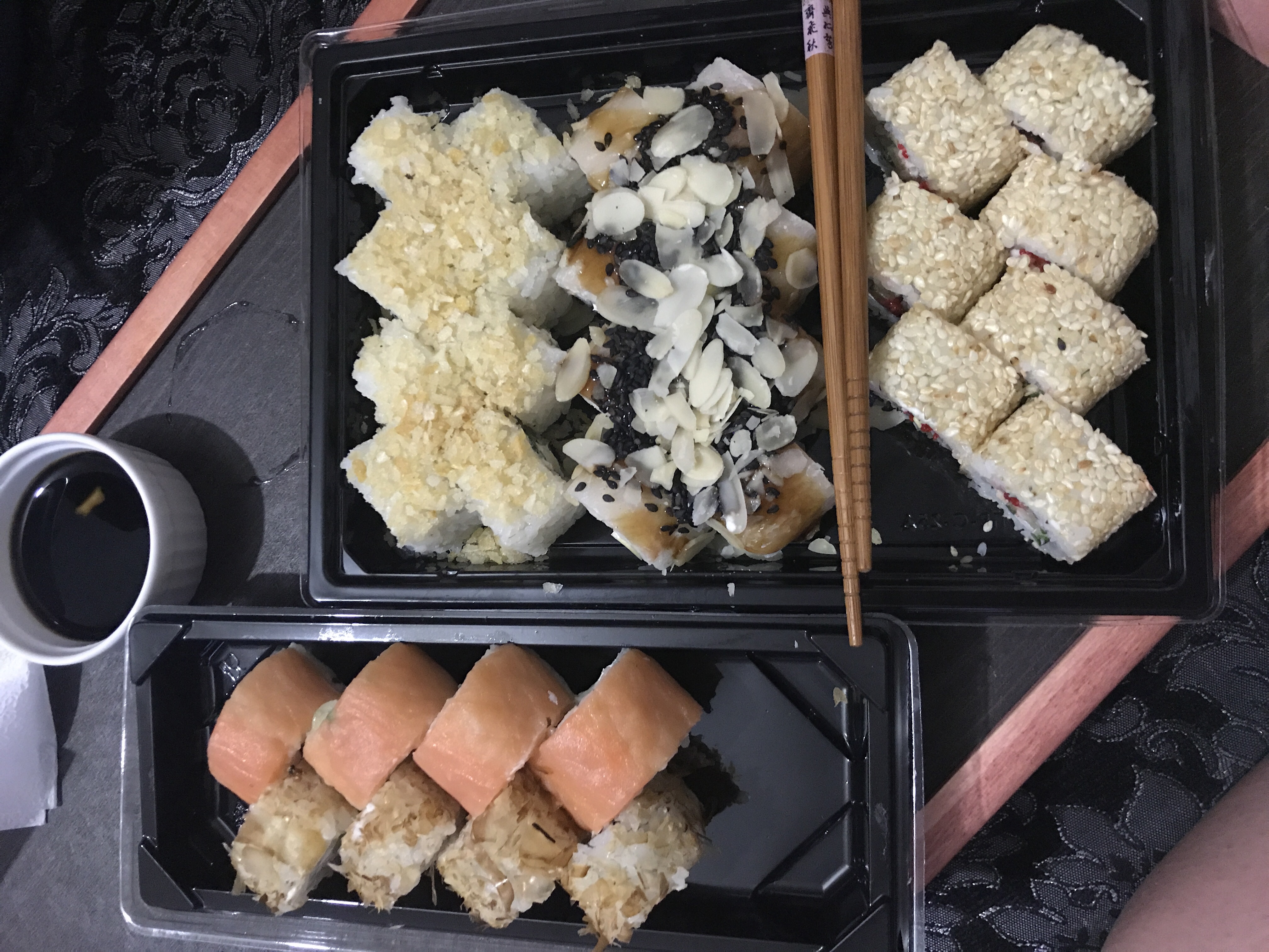 Суши были реально не вкусные, мне кажется, что даже просто в магазинах зачастую были удачнее.