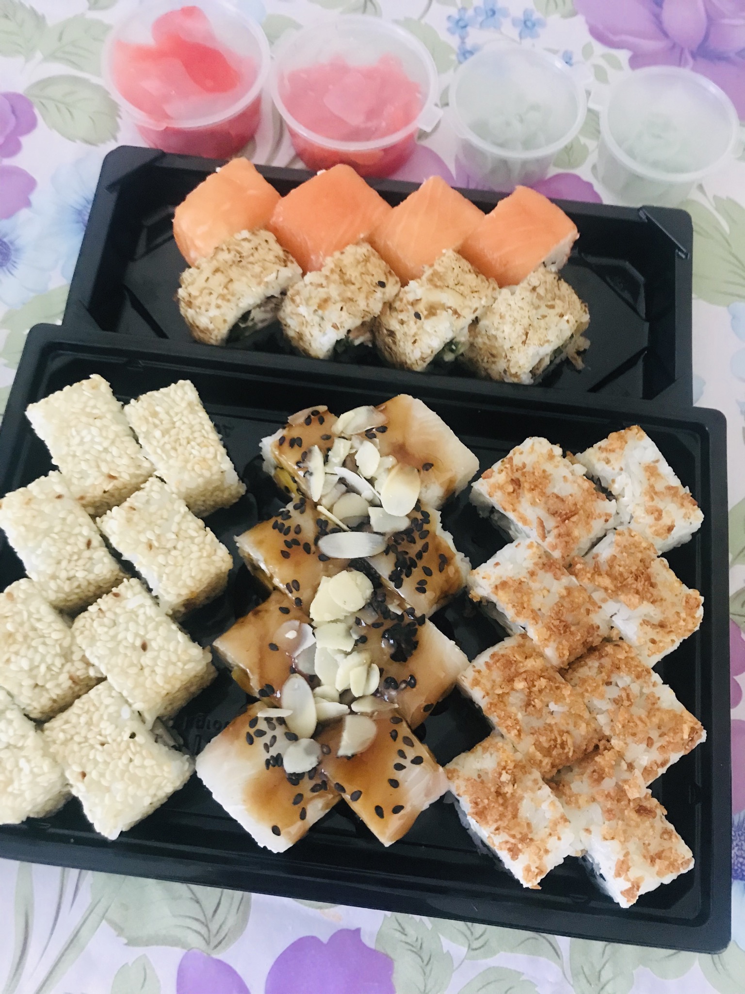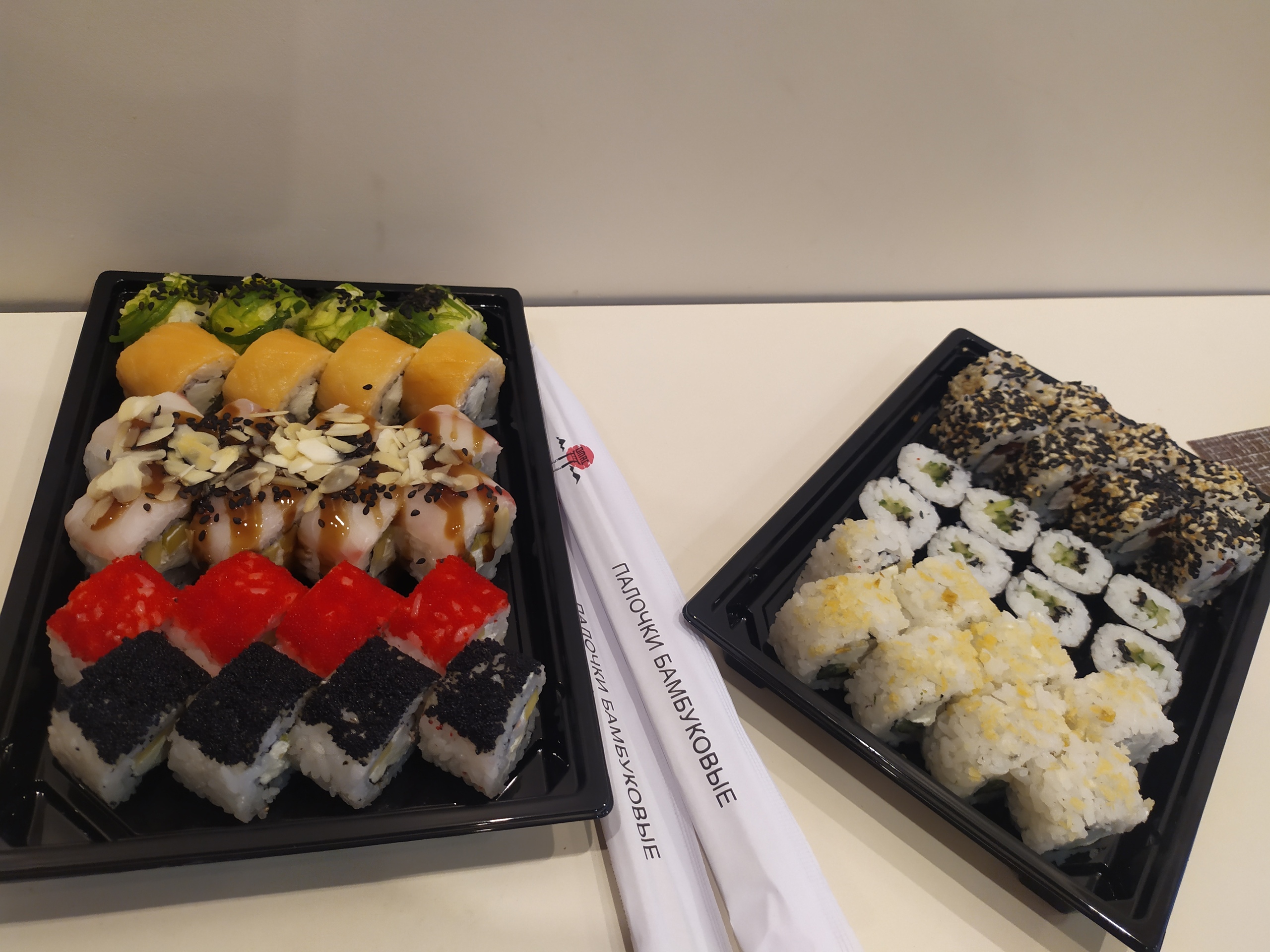 Доставка медленная, ждали 4 часа . Суши вкусные, но не положили палочки. Заказывали дополнительно имбирь, но вместо него положили вассаби, хоть в чеке пробит имбирь.