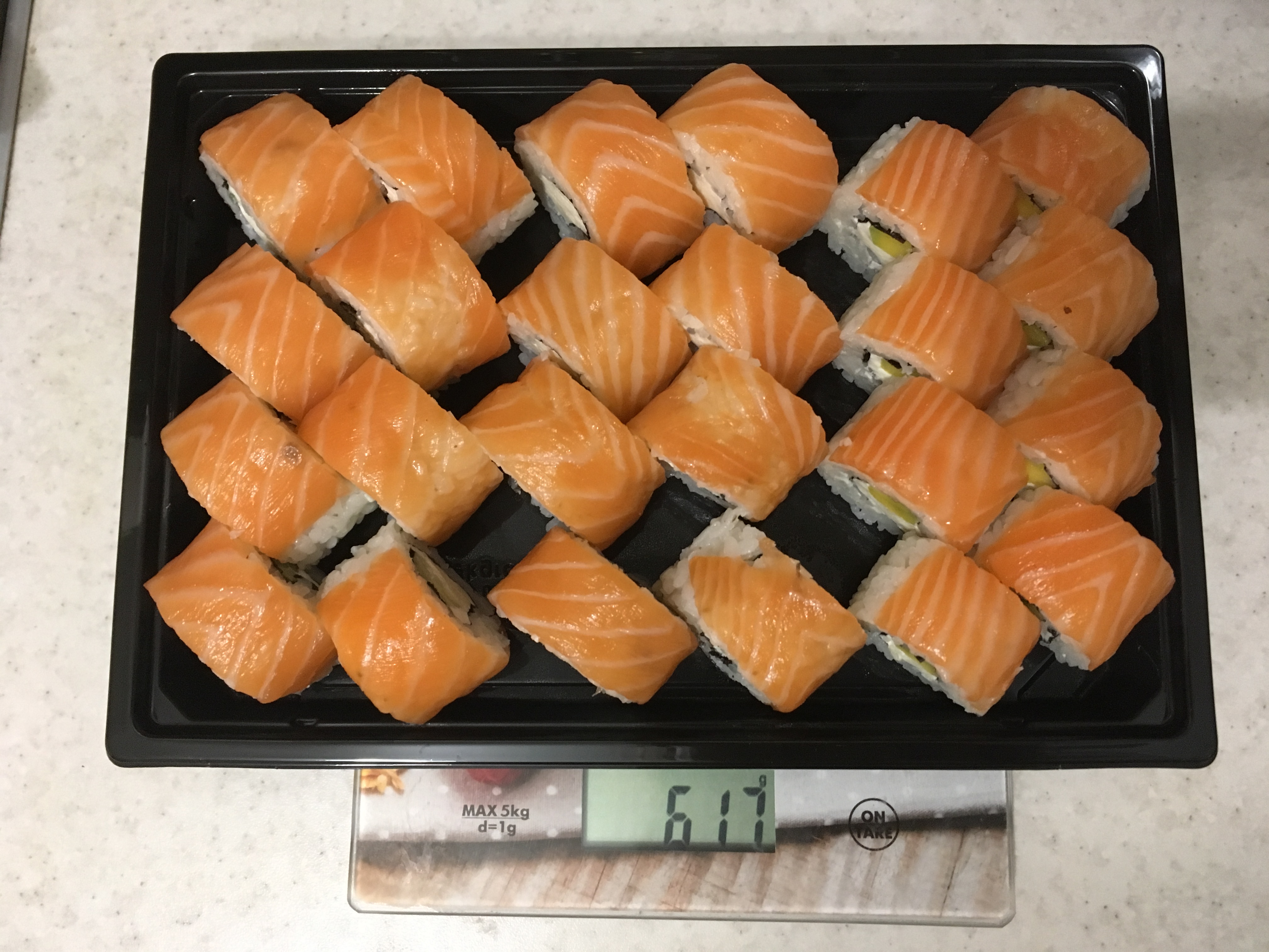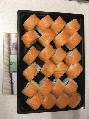 Заказали сегодня сет филадельфия. Доставка около часа (с 17 до 18), это было бы существенным плюсом, если бы не обвес. В акции заявлено 710 г., а приехало около 627г и это с упаковкой (!!!). Думала весы врут, ан-нет, сыр доказал обратное. Рыбы явно пожалели, а кое-где и сыра. Заказывать не буду и жду возмещения