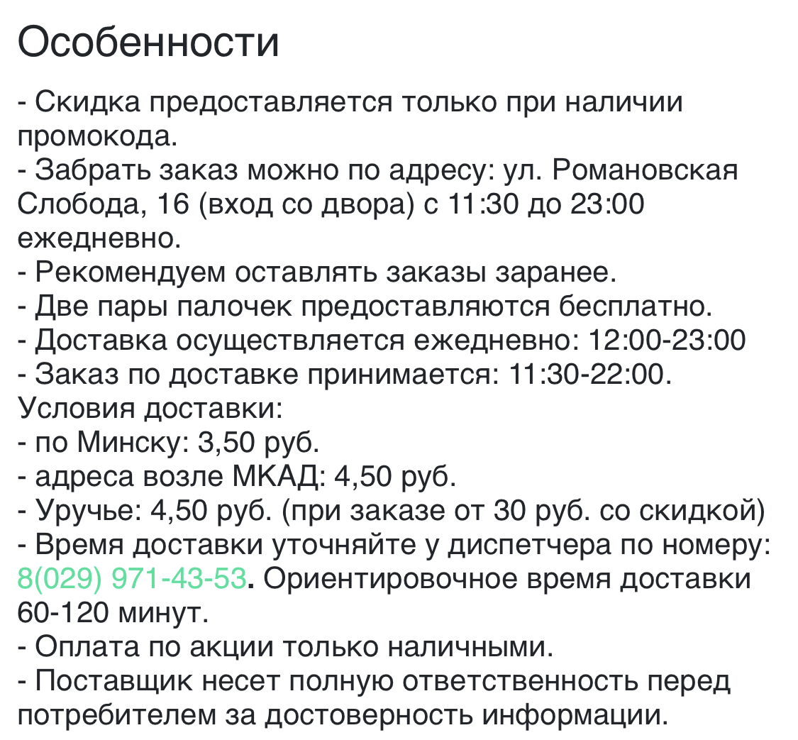 - Время доставки уточняйте у диспетчера по номеру: (029) 971-43-53. Ориентировочное время доставки 60-120 мин