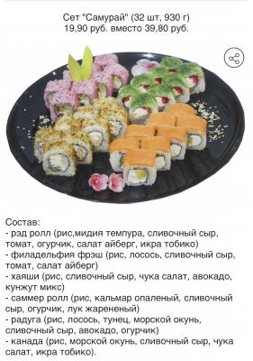 - Стоимость суши-сетов: от 20 руб. от 25 руб.
