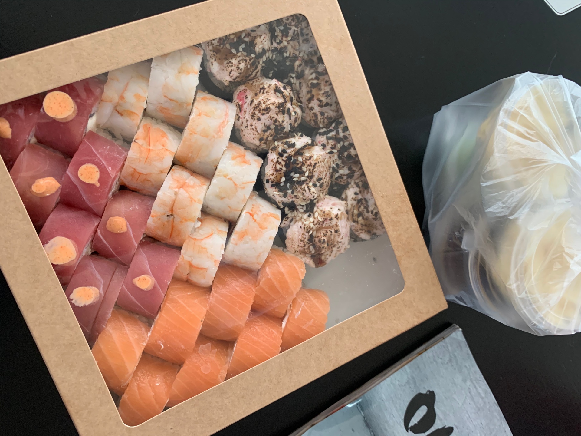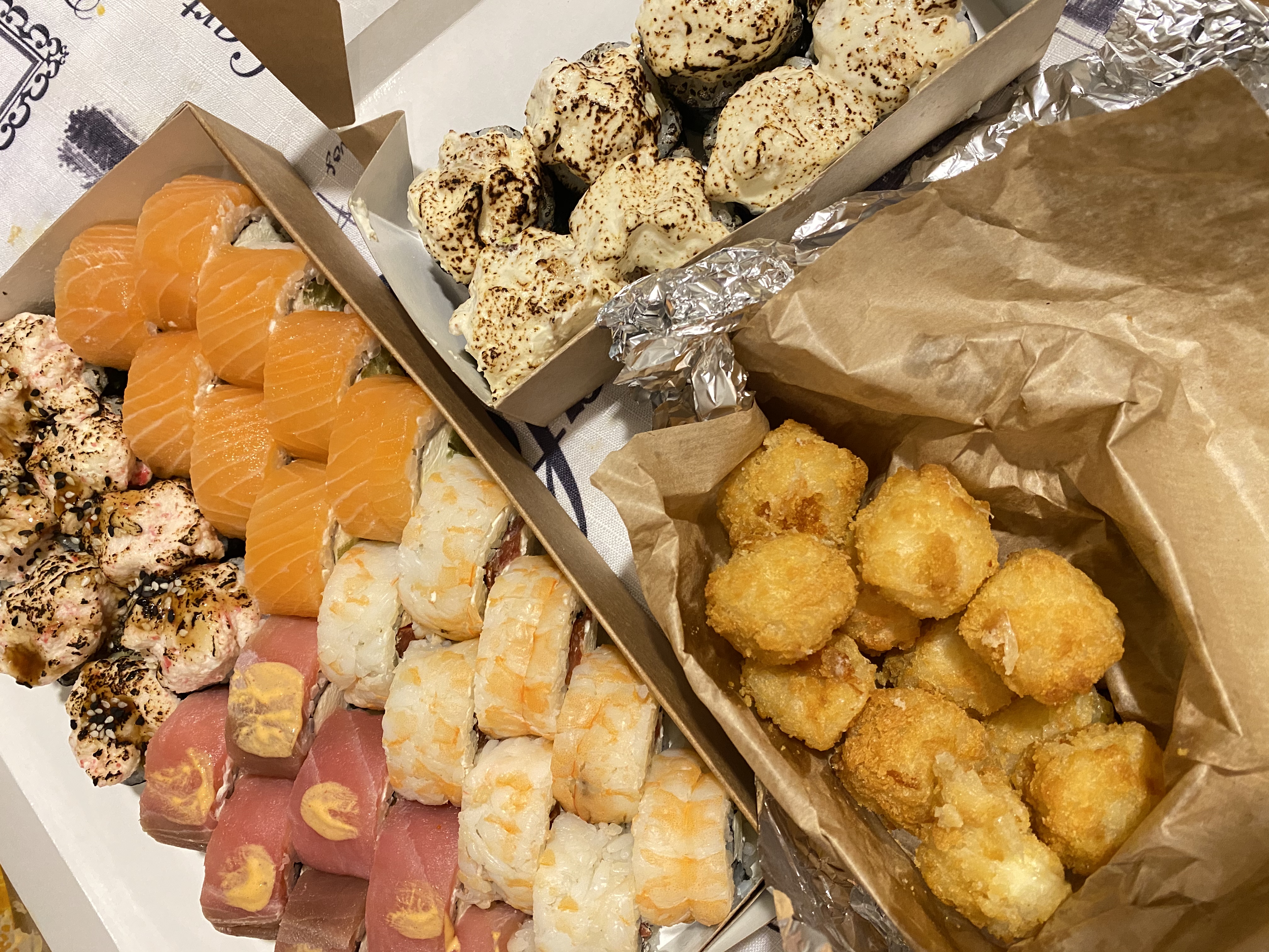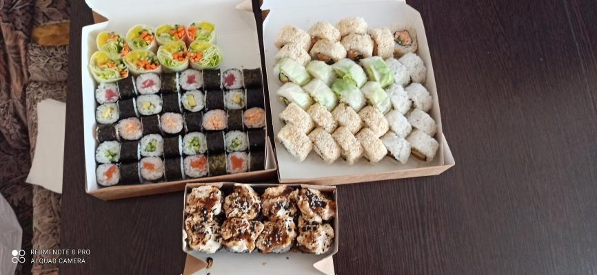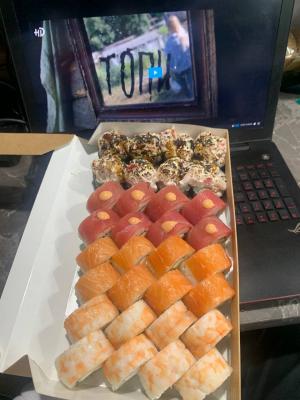 Доставили вовремя, сэт #3 суши большие и вкусные.