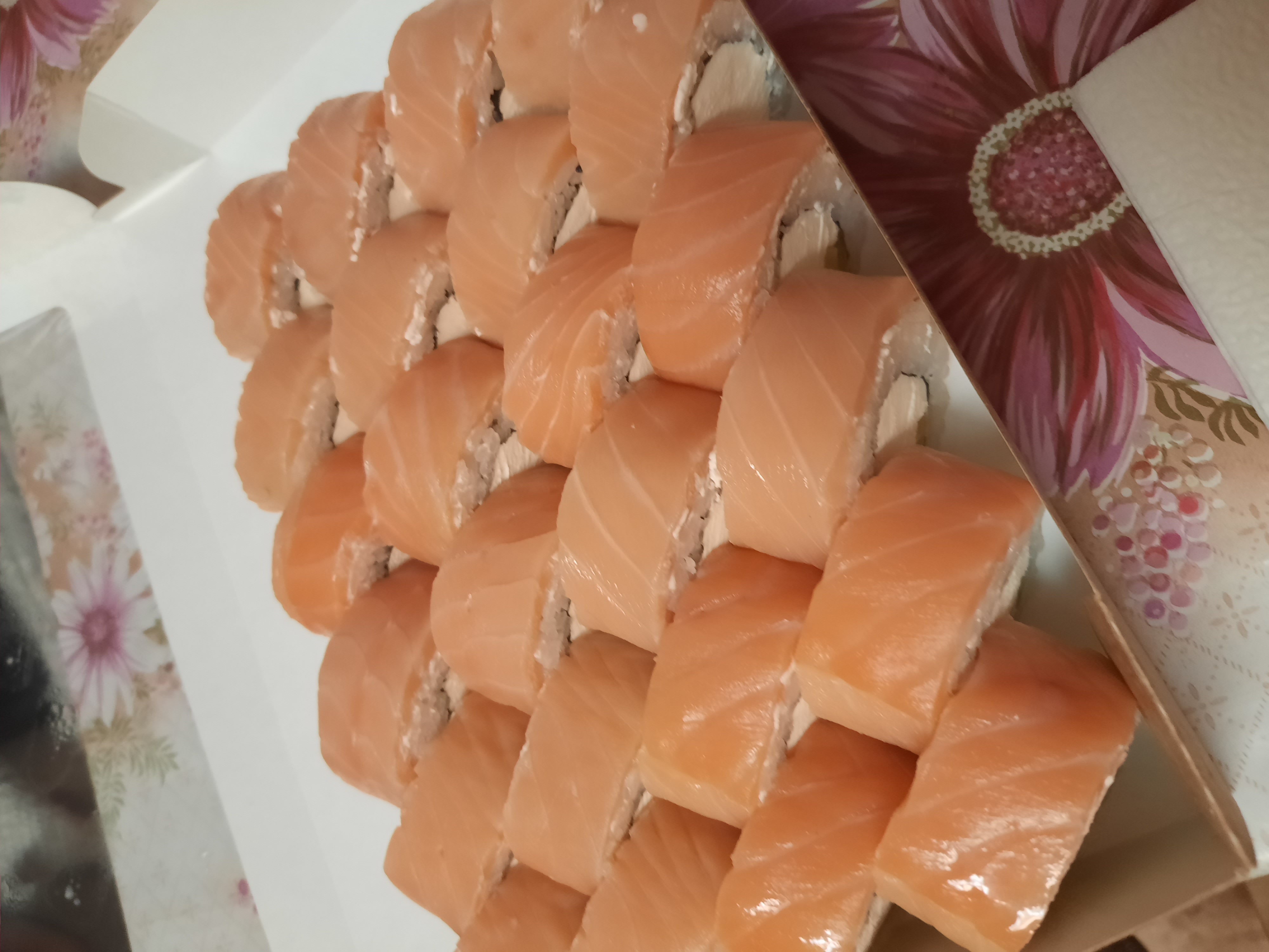 - ролл "Филадельфия Фрэш": рис, лосось, сливочный сыр, нори