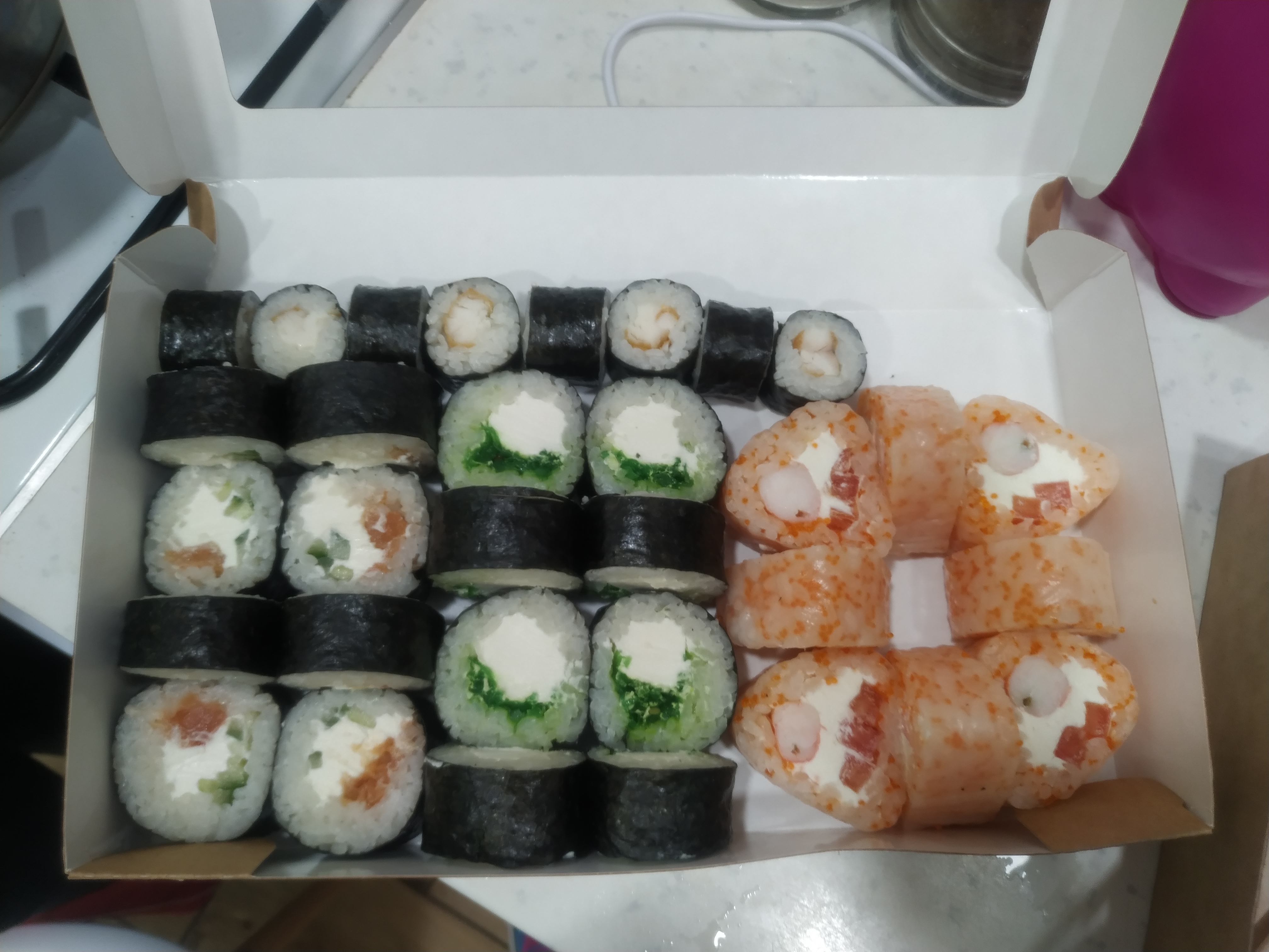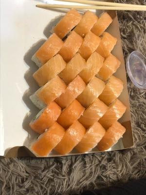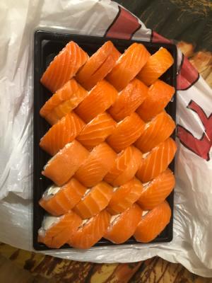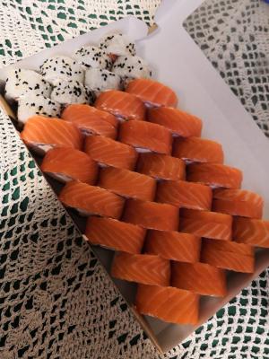 - 0,5 ролла "Сяке Чизу": лосось, нори, сливочный сыр, рис, свежий огурец