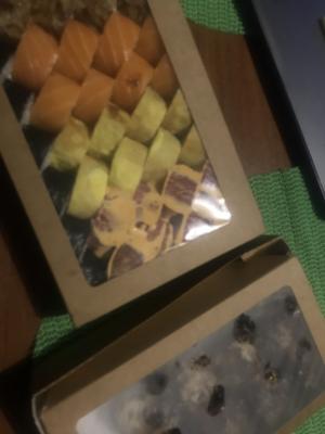 - ролл "Гринвуд": рис, лосось, авокадо, салат айсберг, рисовая бумага