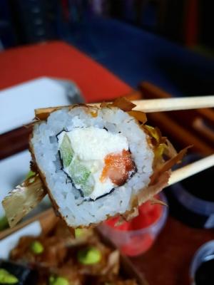 - ролл "Сезам": рис, нори, лосось, сыр, авокадо