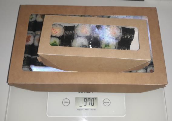 - ролл "Мини ролл с мидиями": рис, нори, мидии, соус спайси