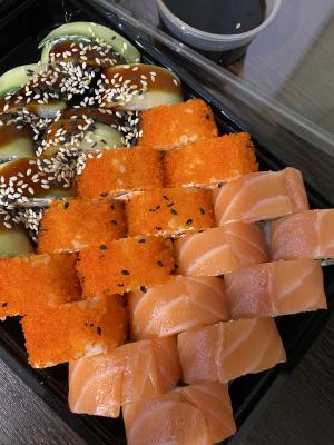 Заказывали сет на доставку. Привезли вовремя, роллы очень вкусные! Спасибо Вам!