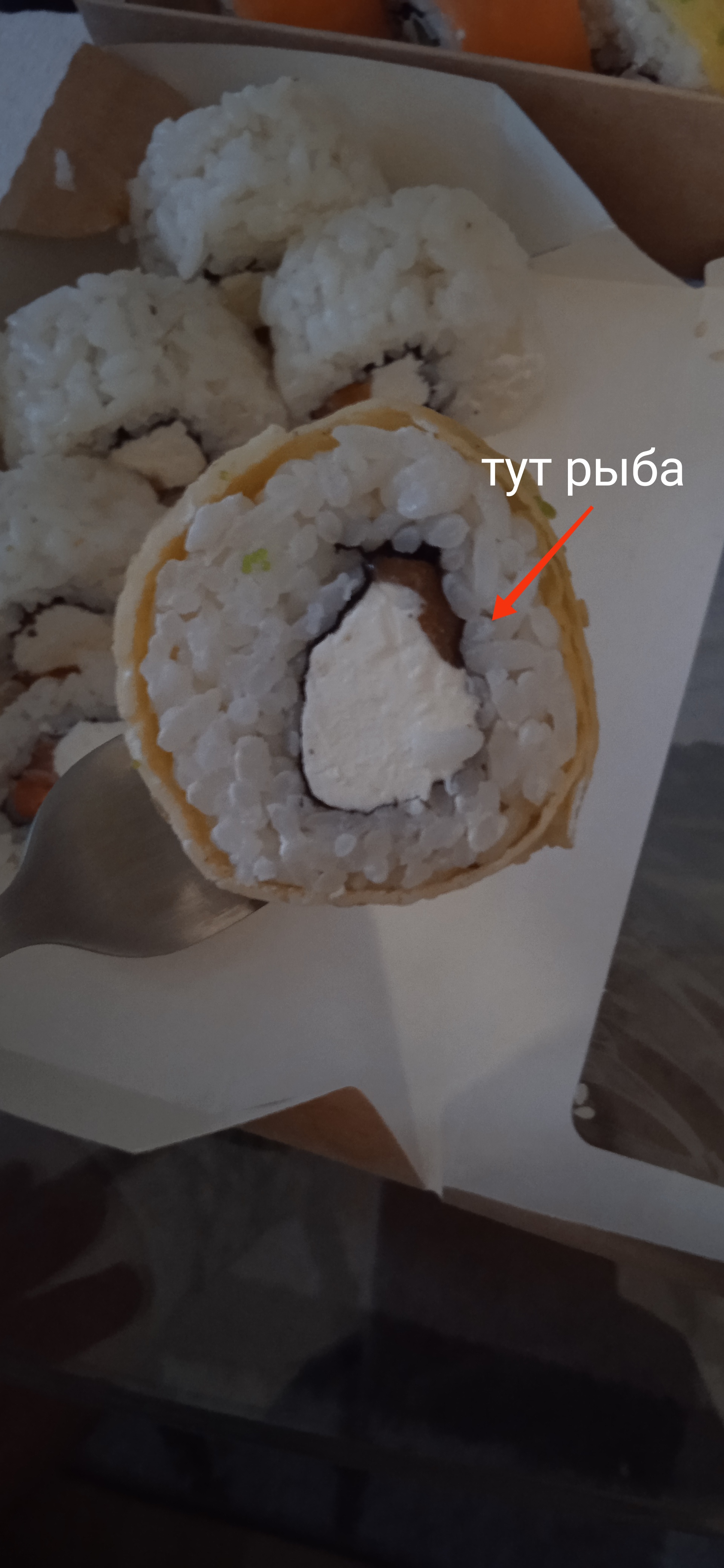 На изображении в Сливках нормальные роллы, а приехал килограмм риса с тонюсеньким слоем рыбы (смотрите фото), в некоторых местах настолько тонкая рыба, что просвечивается сквозь неё рис 🤣
