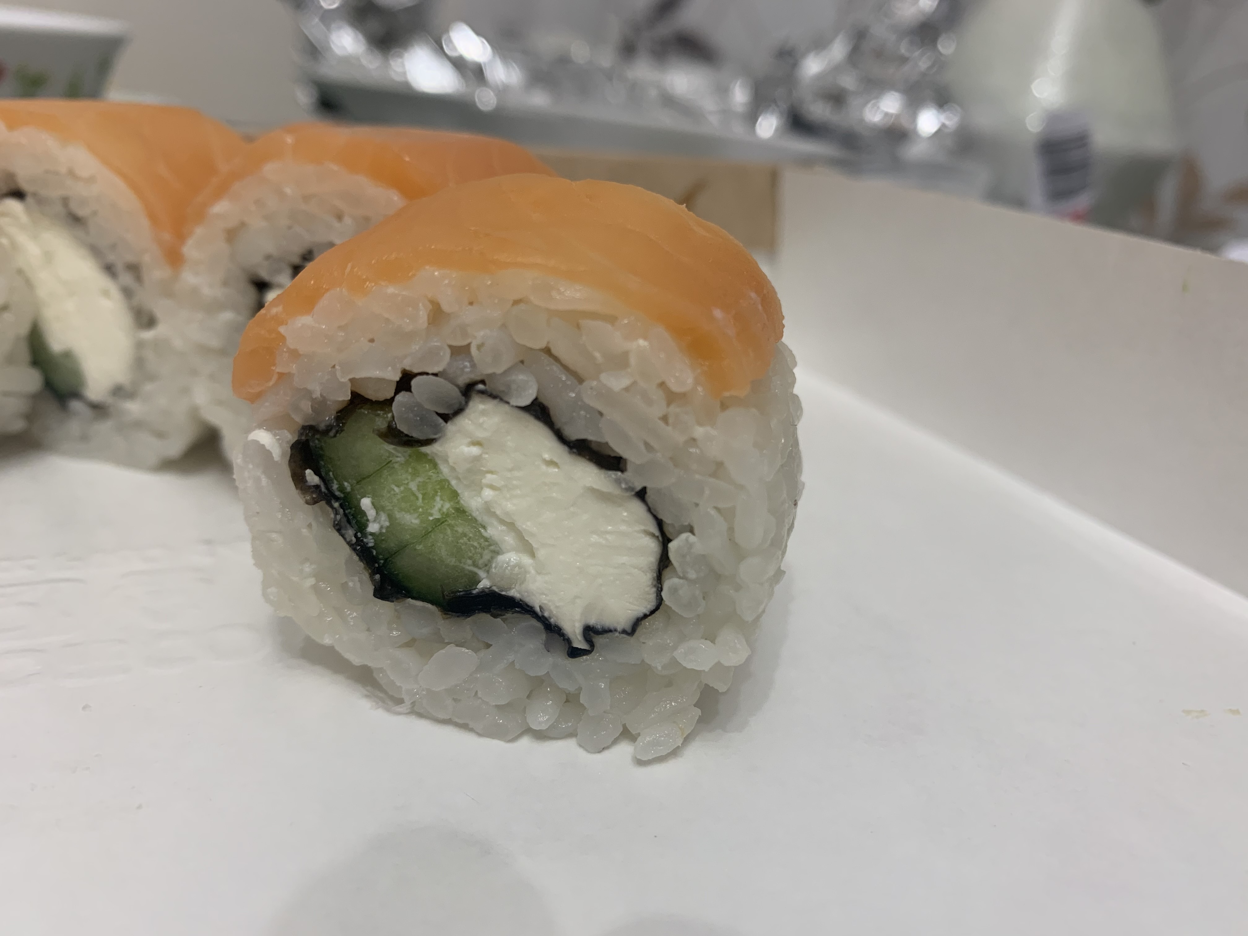 - ролл "Филадельфия Фрэш": рис, лосось, сливочный сыр, нори