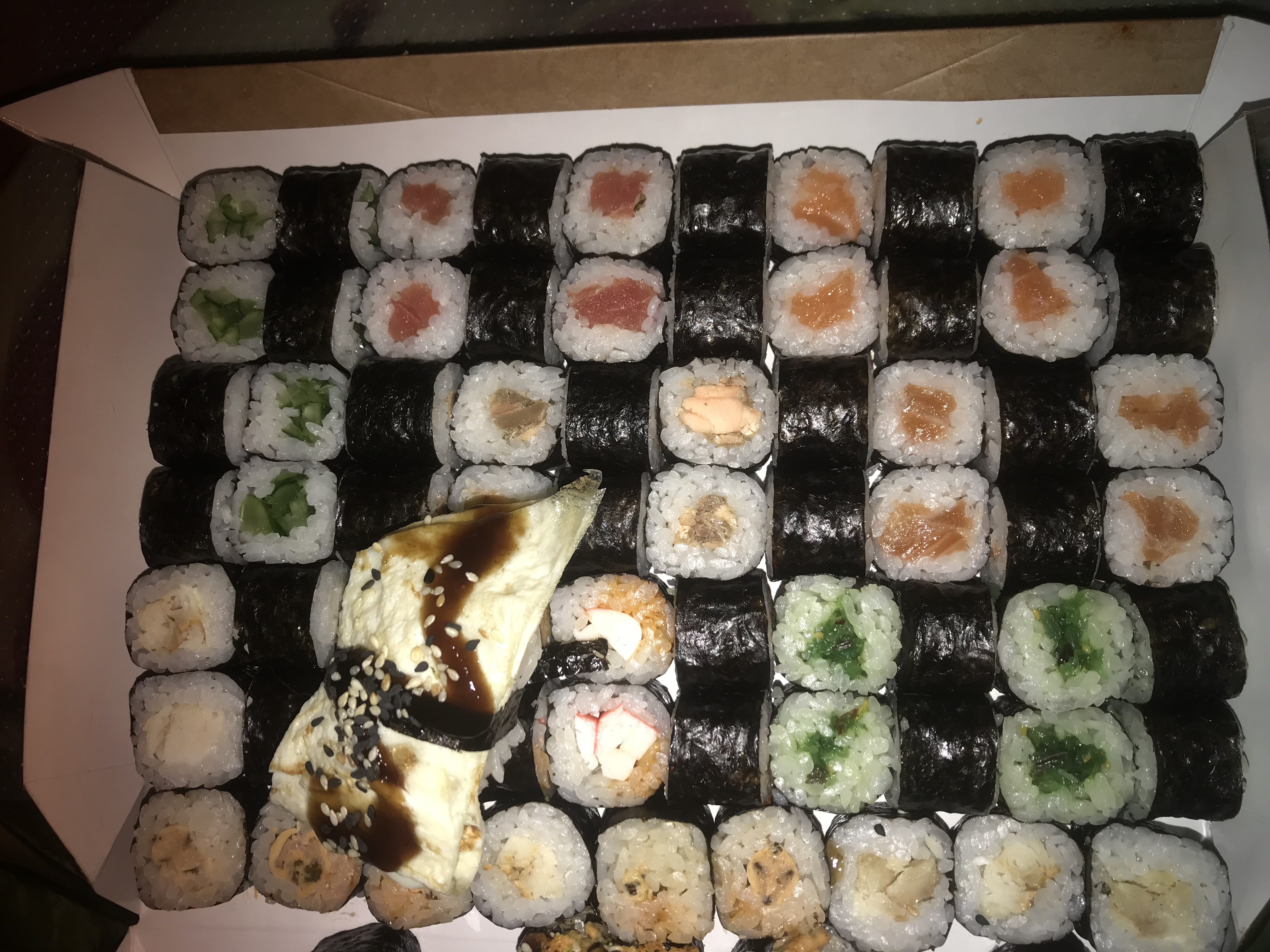 Вполне адекватные суши. Заказывали сет 10. Привезли вовремя. Начинки достаточно, на вкус не идеально, но неплохо. Будем заказывать у вас еще
