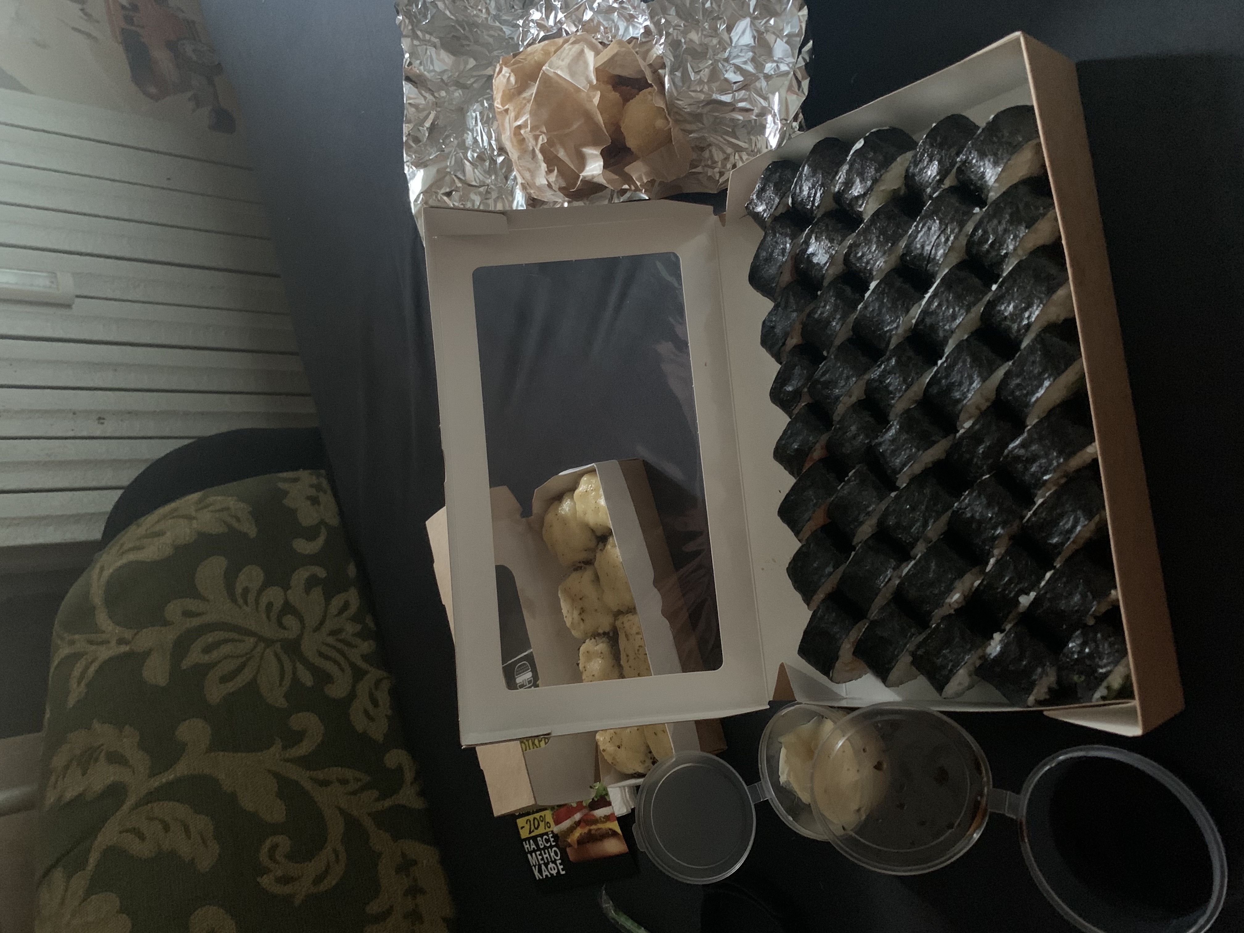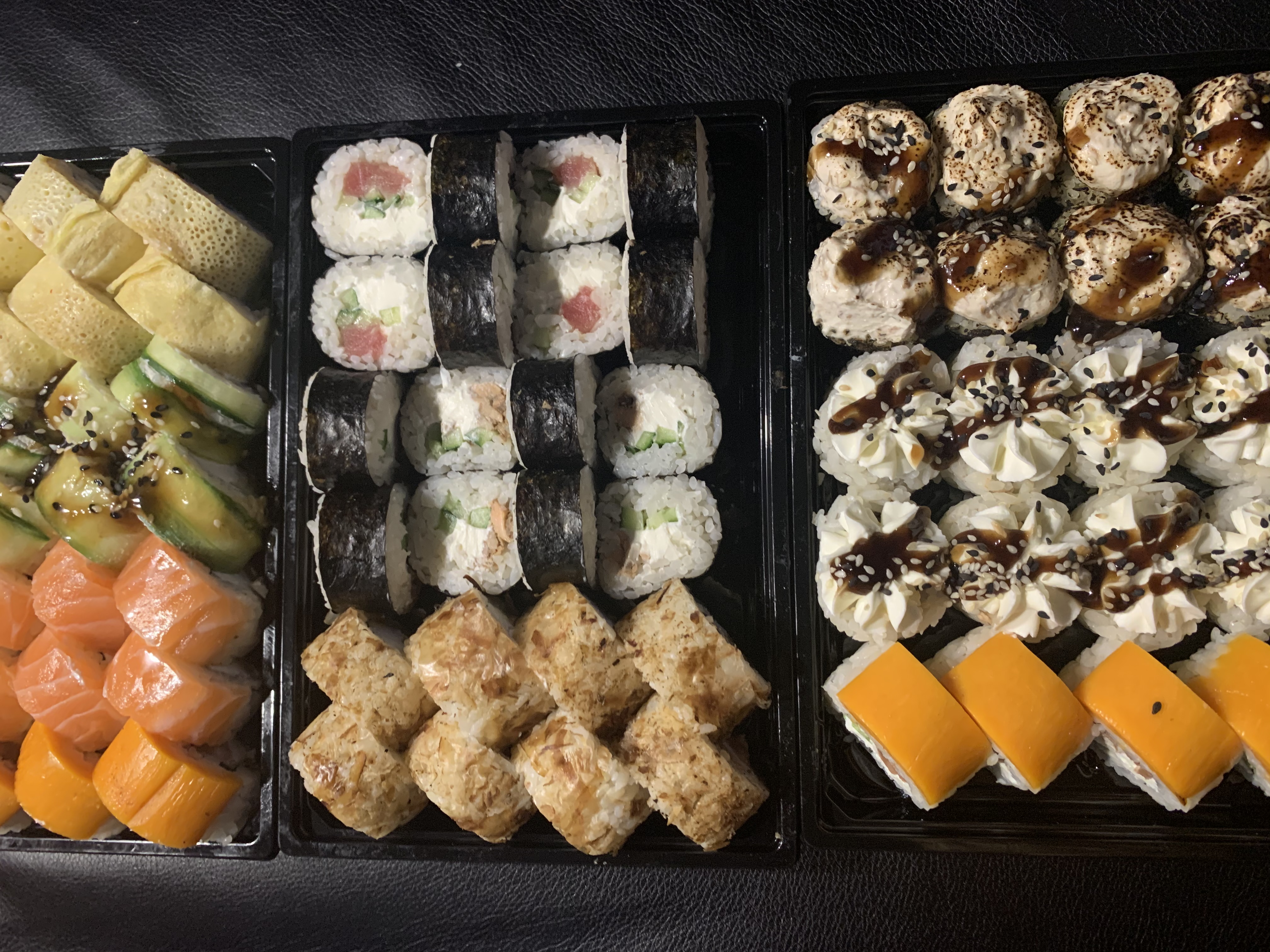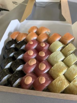 Самые вкусные суши города! Всегда свежие, много начинки. Активный персонал, приятная атмосфера при самовывозе. Брала, беру и буду брать)) спасибо.