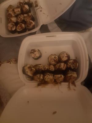 Вместо обещанной доставки 1.30 (+-15мин), получилось 2 часа . На фото все видно как это было упаковано и что с ними случилось(сэт  N9) , а ролл Филадельфия в кунжуте почти без рыбы). Очень огорчили...