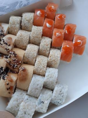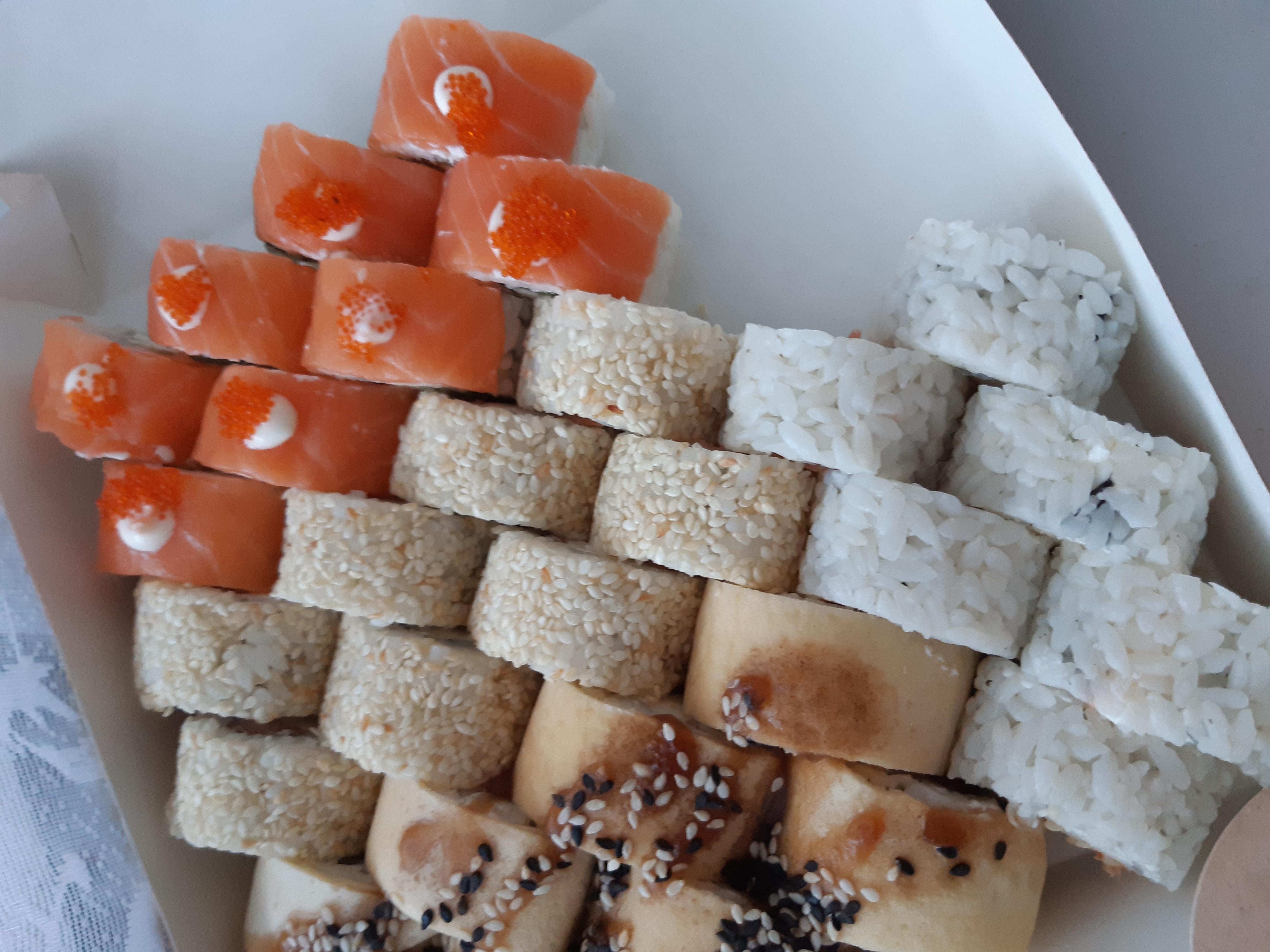 - ролл "Сезам": рис, нори, лосось, сыр, авокадо