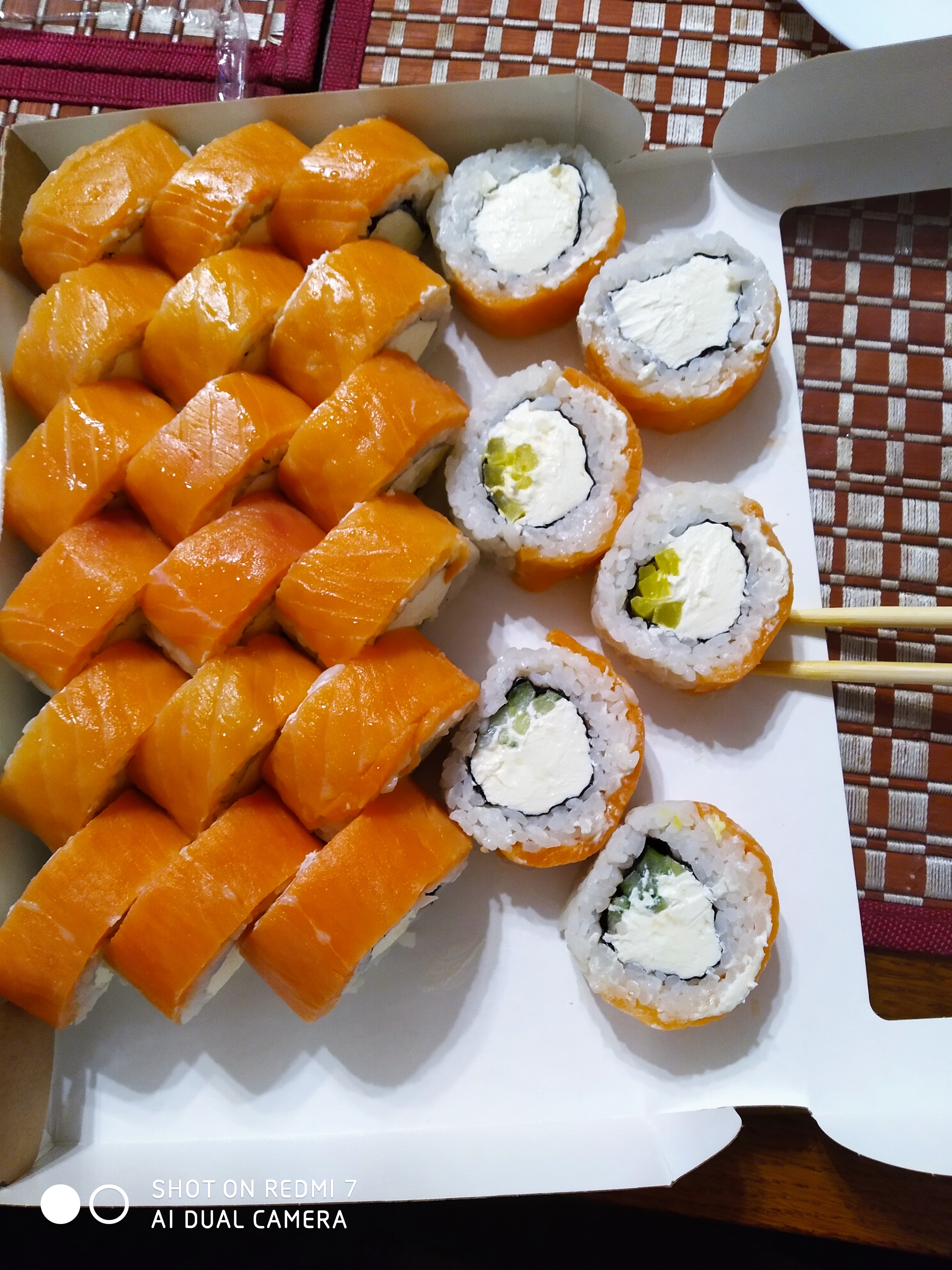 - ролл "Филадельфия Фрэш": рис, лосось, сливочный сыр, нори