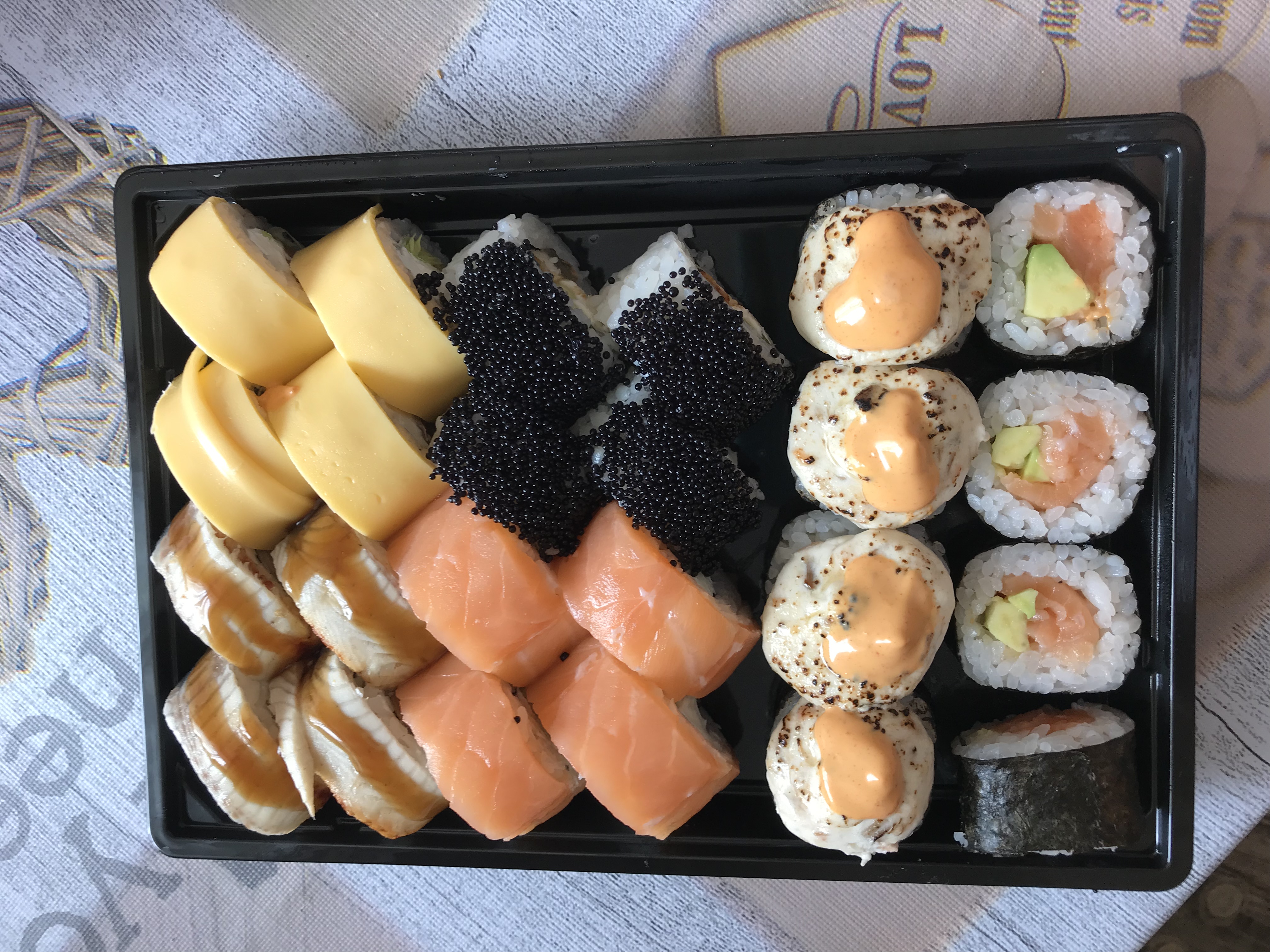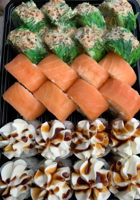 При онлайн-заказе на сумму от 35 руб. - подарок ролл с жареным лососем (175 г)