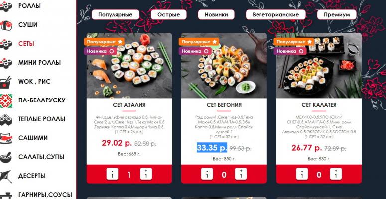 🍣 Стоимость суши-сетов: от 8,75 руб. от 29,13 руб.
