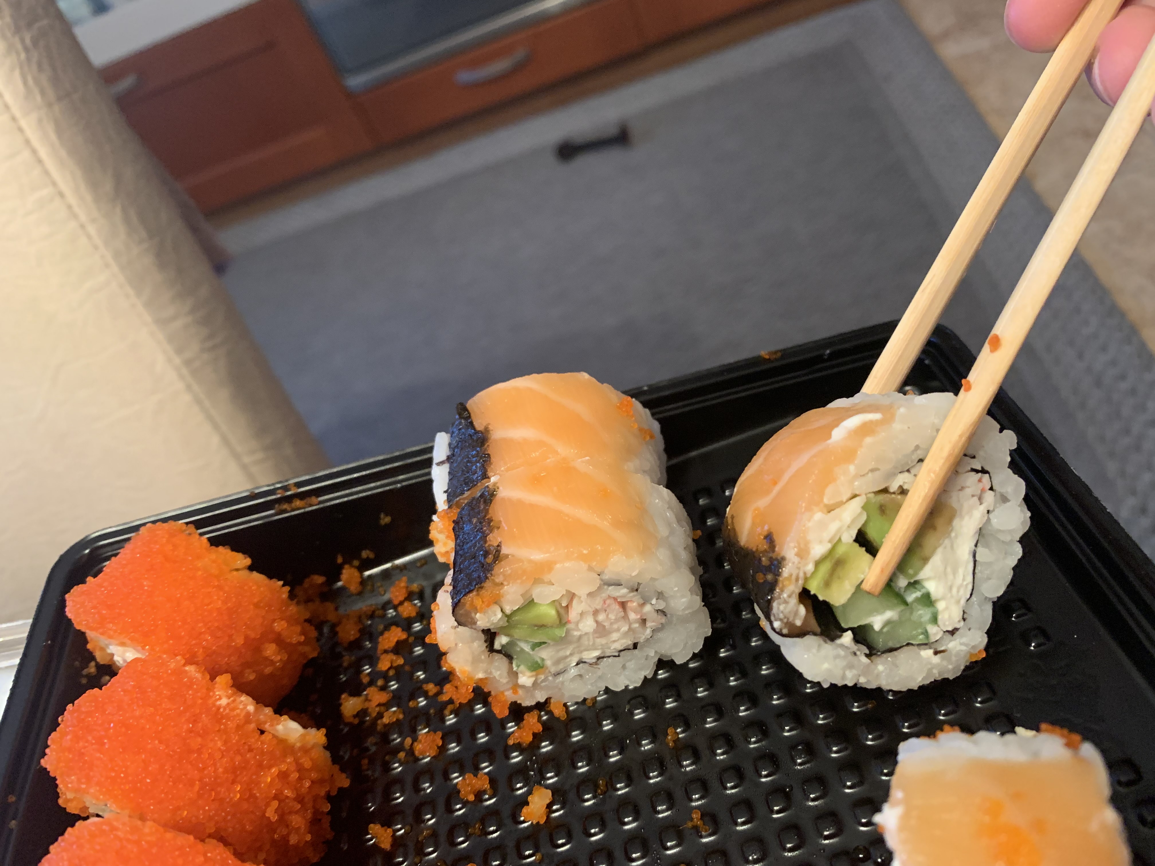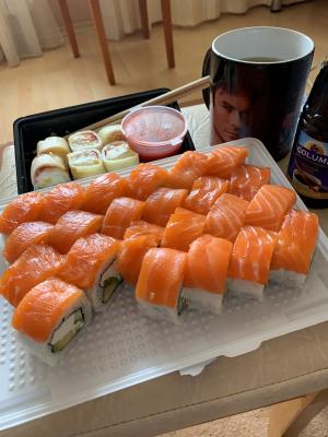 Замечательные роллы. Как всегда свежие. Даже опоздание курьера на 5 минут (пробки они такие🤷‍♀️) не смогло помешать насладиться вкуснейшим сетом.
