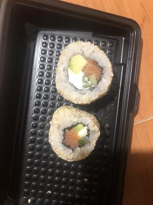 Спасибо за рис с крабовыми палочками за 50 р. Такого мизерного количества рыбы я не видела даже в магазинных суши. Палочки не положили- пришлось есть вилками.