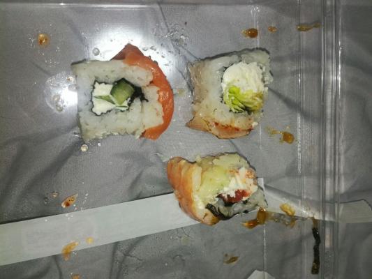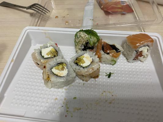 Пожалела что решила заказать суши, сет "Деловые люди ". Рис какой то недоваренный, суши разваливались да и на вкус так себе конечно.