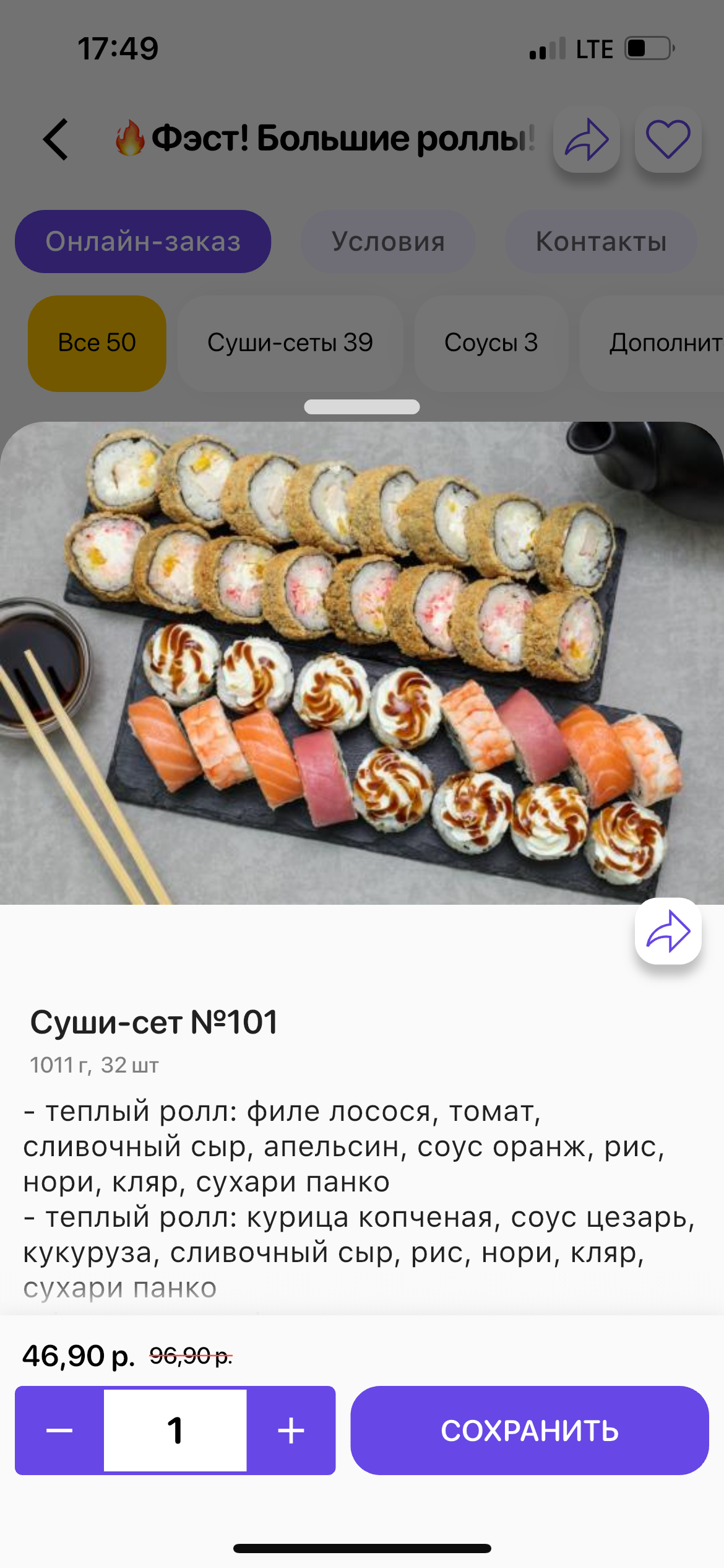🍣 Стоимость сетов: от 32,90 р. от 72,72 р.