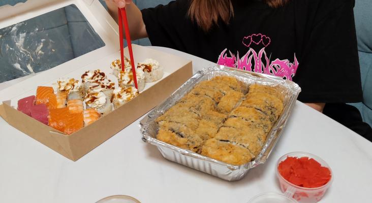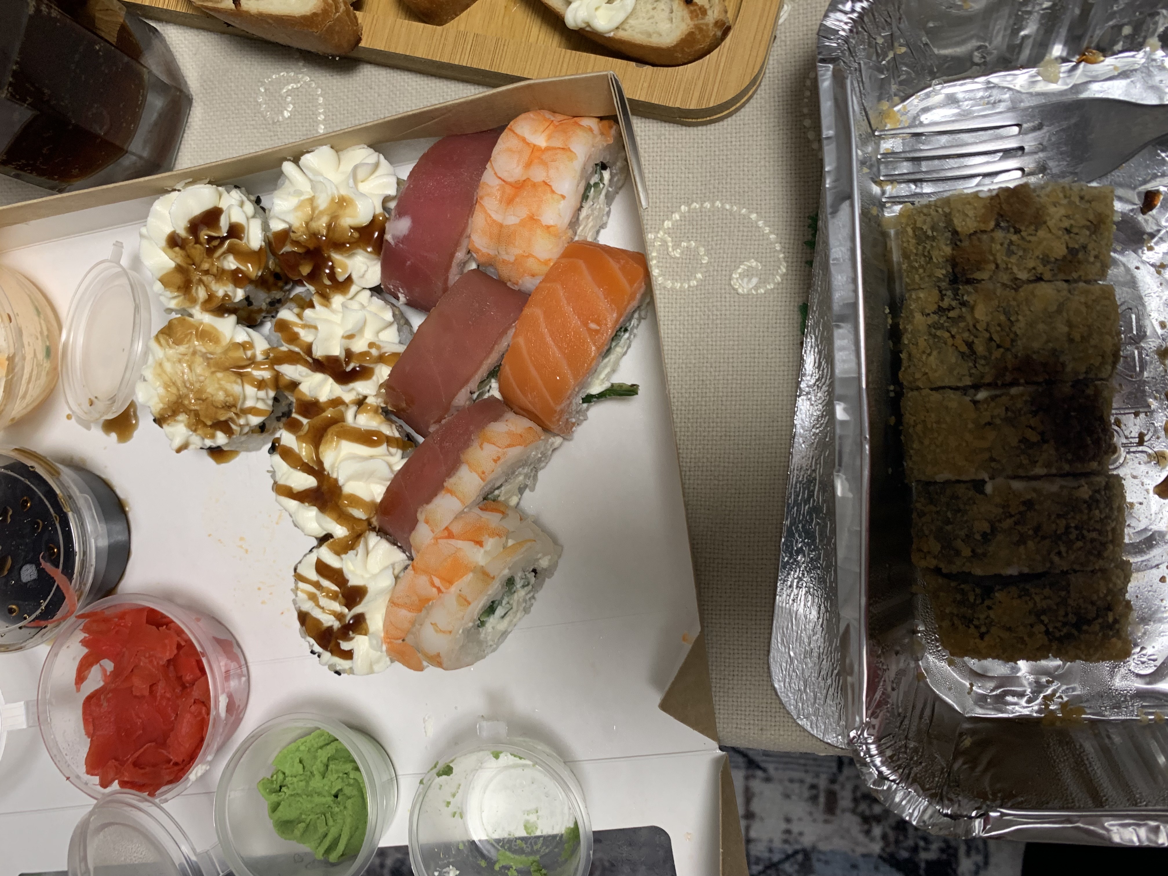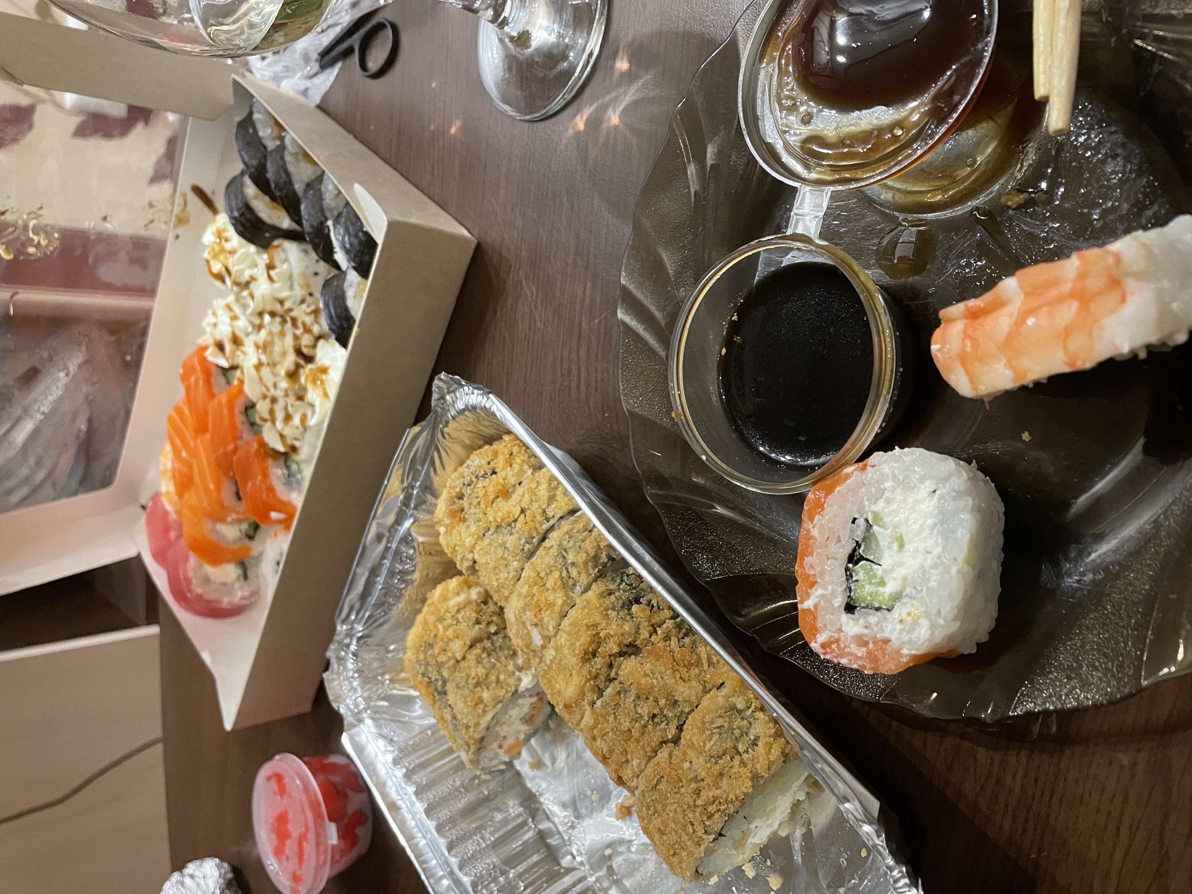 - В теплых ролла крайние кусочки отдаются запечатанными, так как большинству нравится дополнительная панировка на роллах!