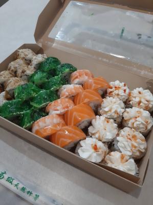 - В теплых ролла крайние кусочки отдаются запечатанными, так как большинству нравится дополнительная панировка на роллах!
