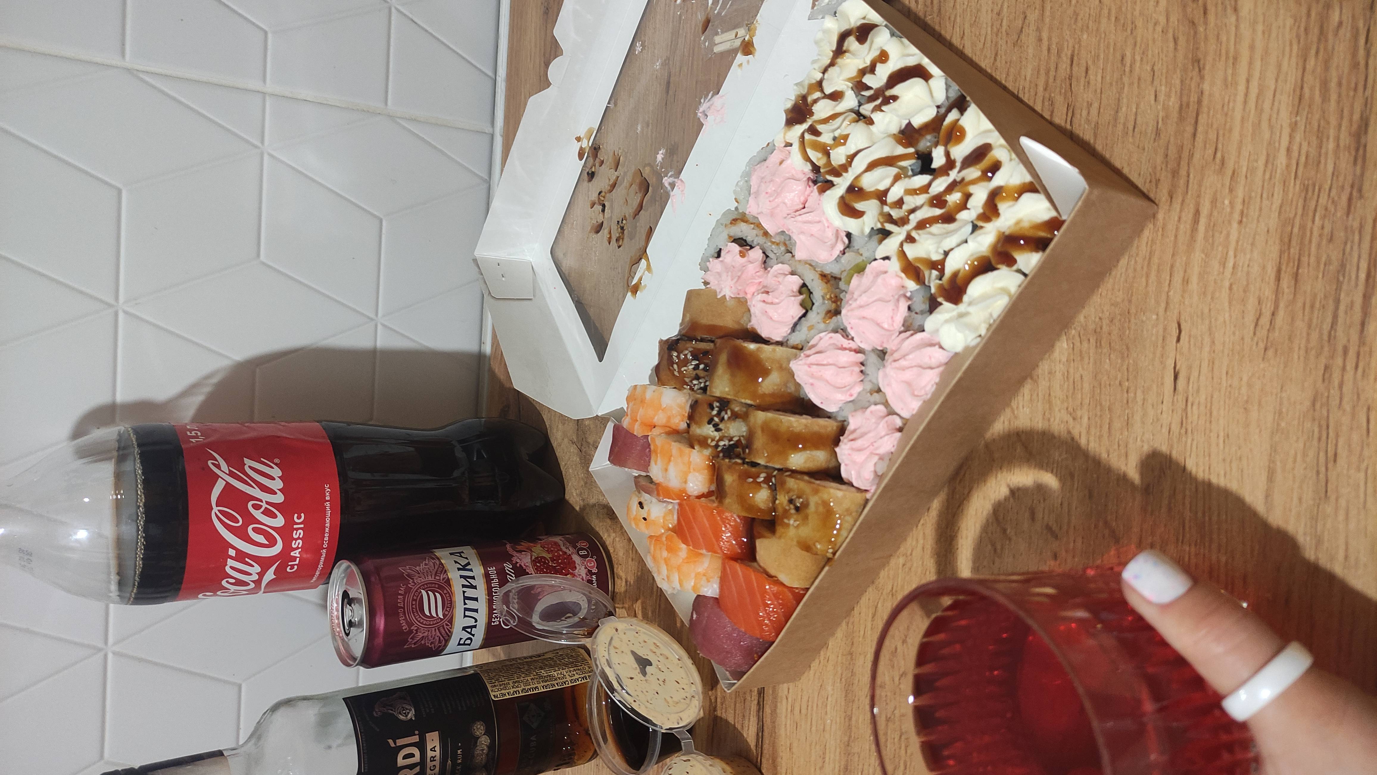 Суши просто бесподобны)) я крайне редко оставляю отзывы, но тут не удержалась)) спасибо команде за вашу работу!!! Повезло с доставкой, вышло раньше заявленного времени, курьер вежливый.