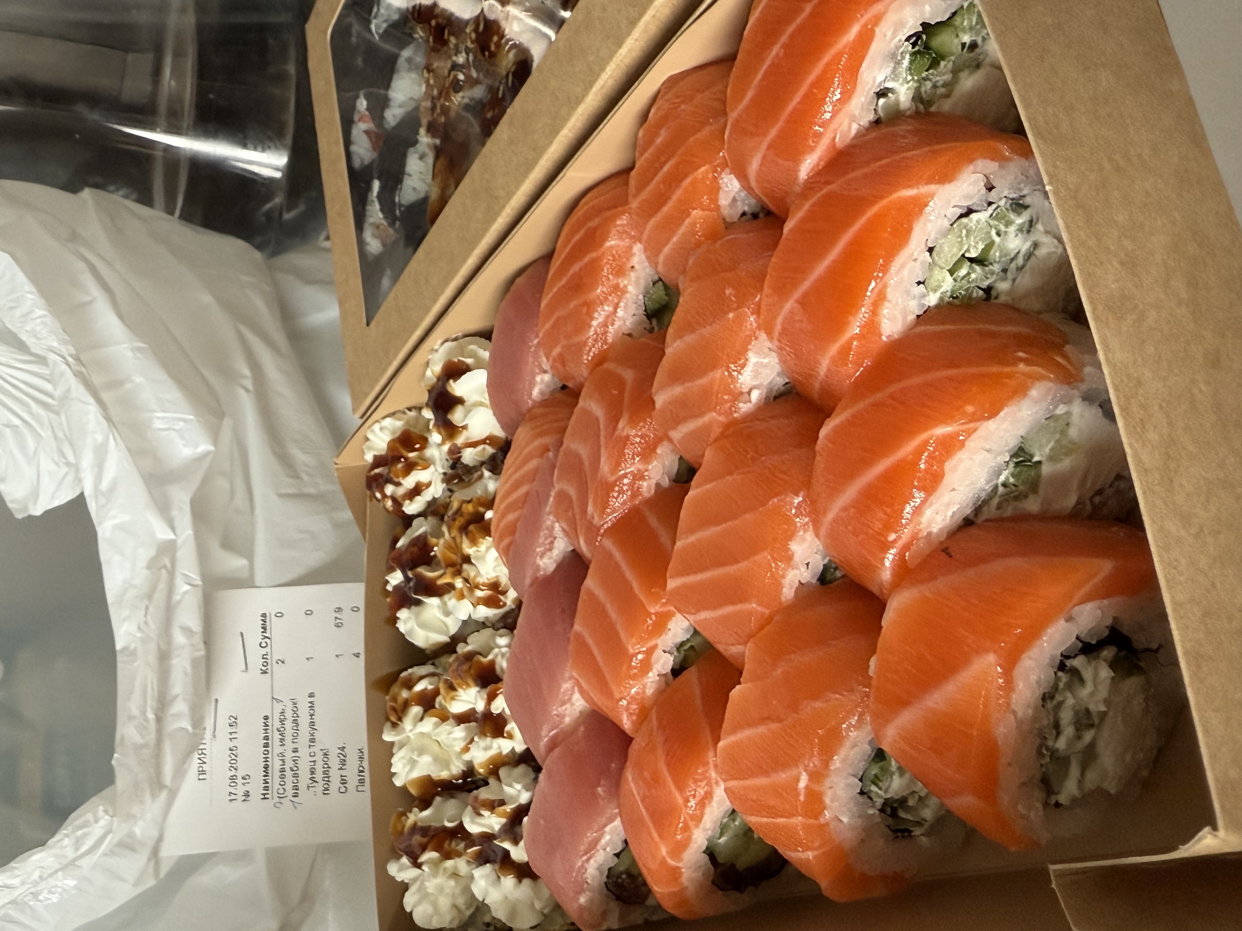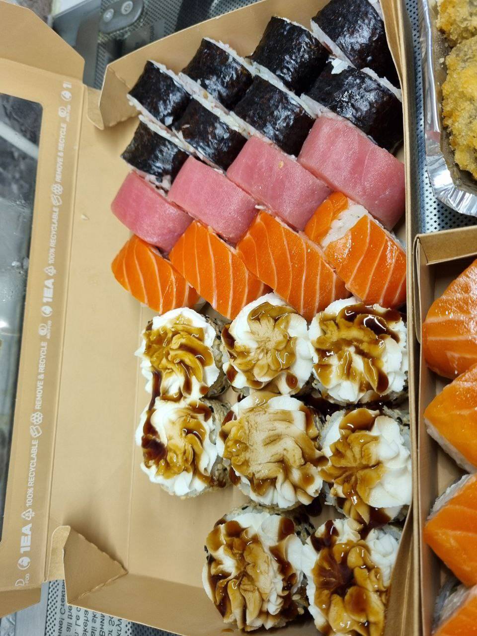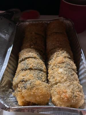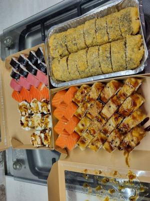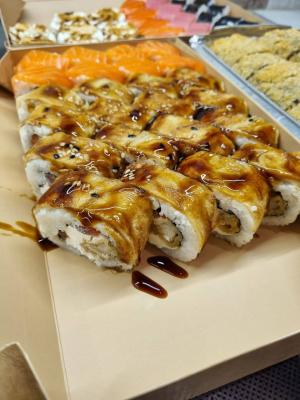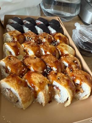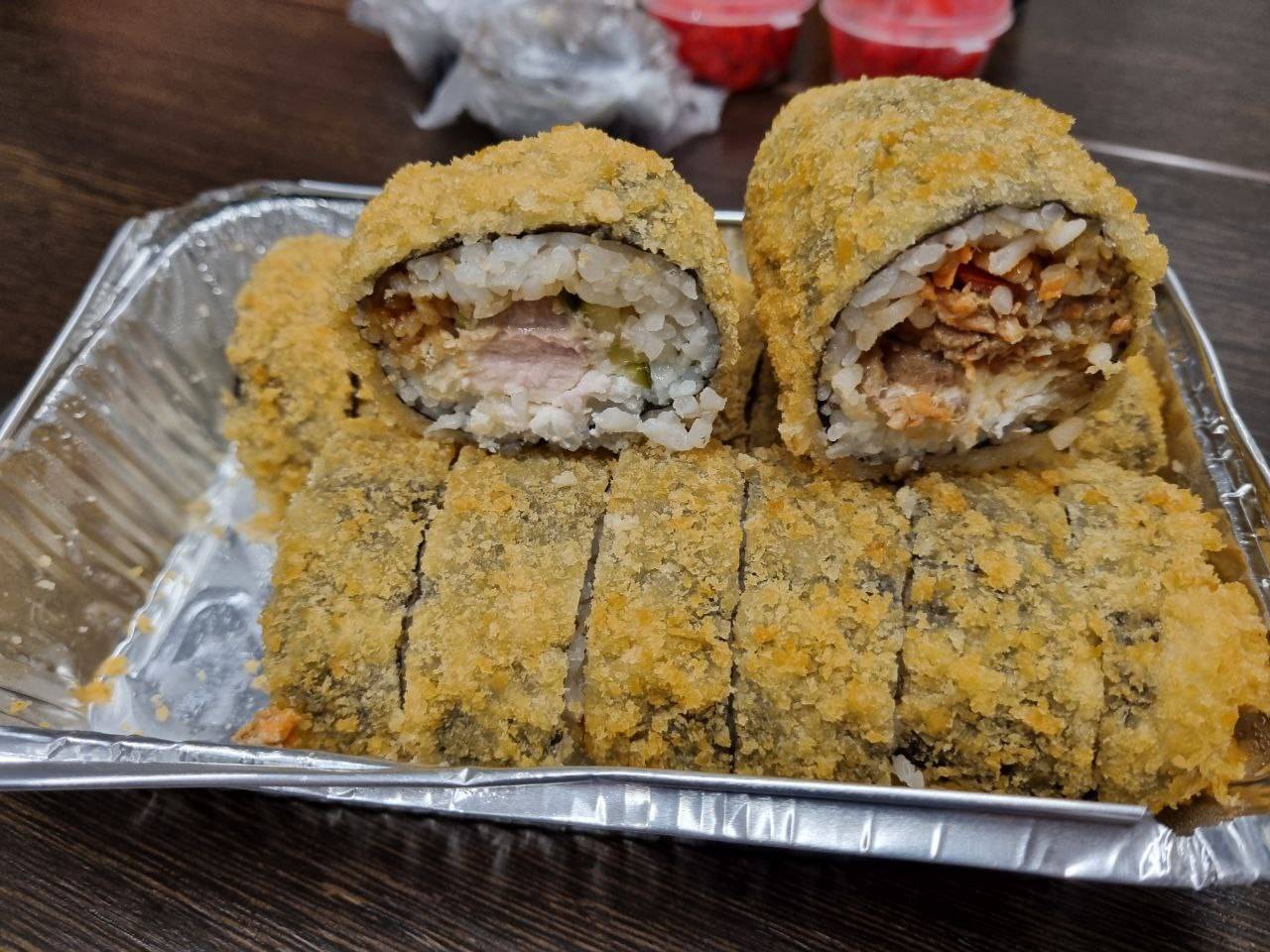 - В теплых ролла крайние кусочки отдаются запечатанными, так как большинству нравится дополнительная панировка на роллах!
